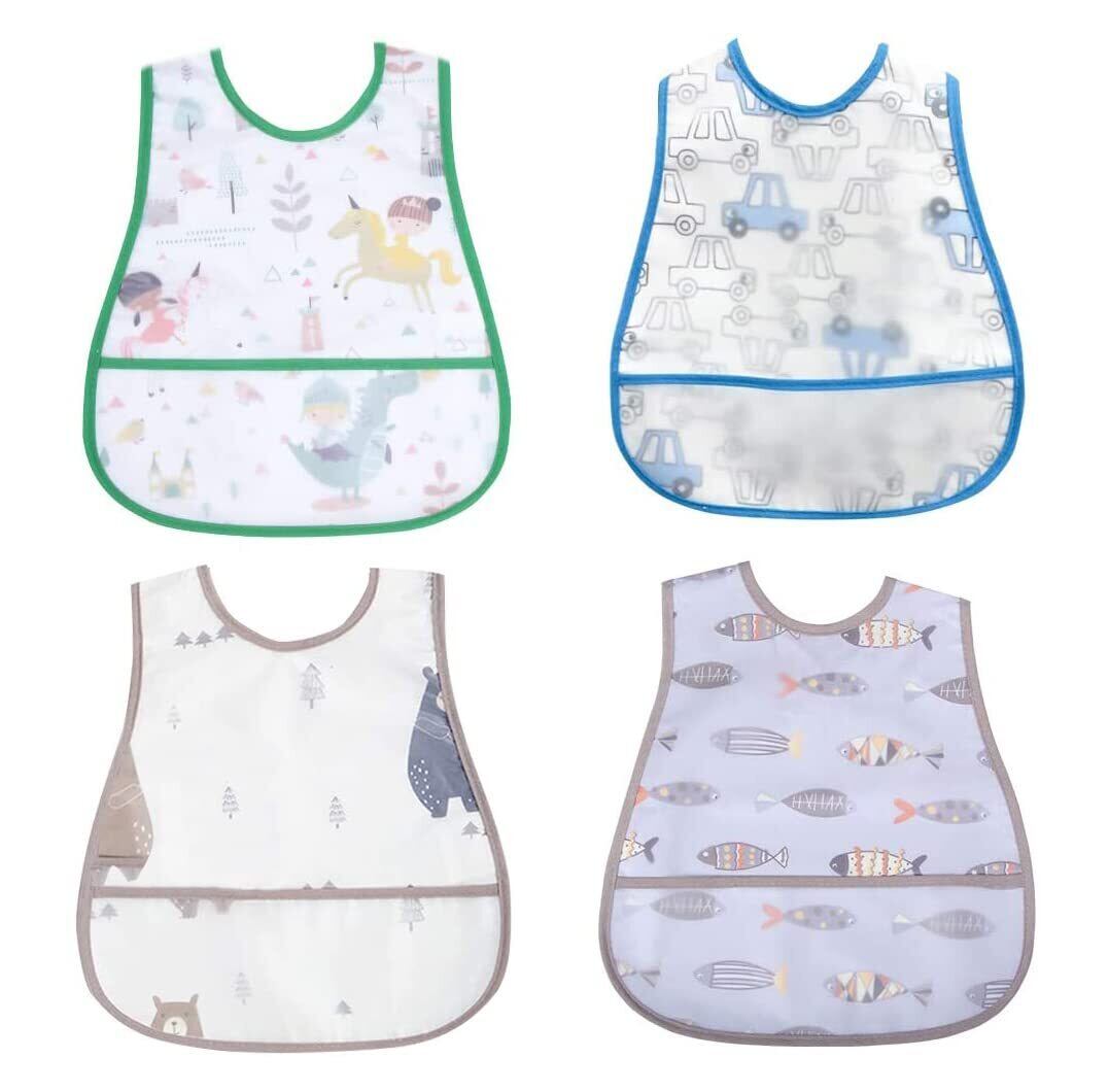 [MOMSMENU] 食事用エプロン ベビー 保育園 離乳食 スタイ 汚いにくい 洗いやすいと乾きやすい 軽量 名前入 4枚セット ブルー