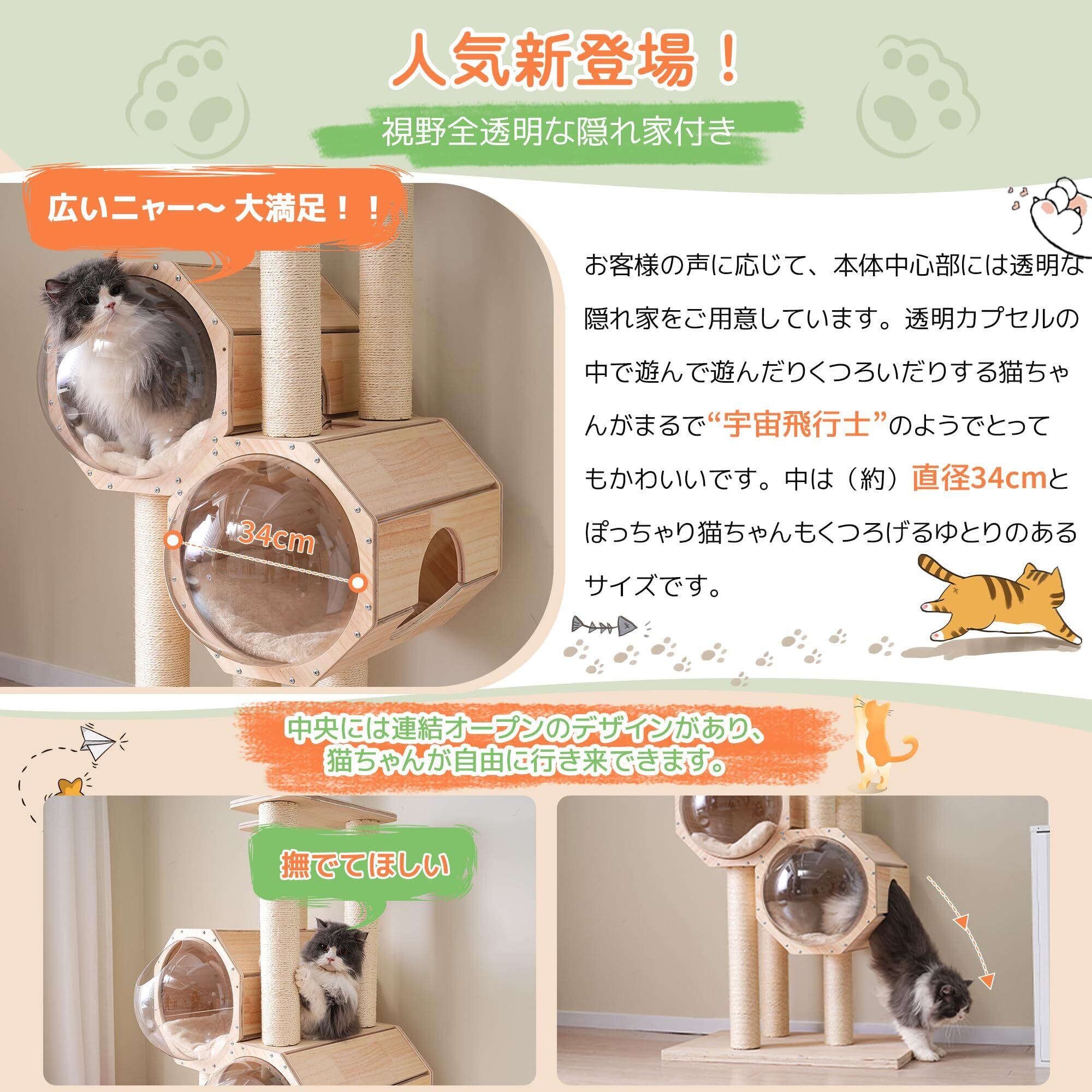 BTM キャットタワー 木製 猫タワー ネコタワー 多頭飼い 大型 高さ152cm 二つ 透明な隠れ家 ポンポンおもちゃ 付き おしゃれ タワー 可愛い 運動不足解消 子猫 大型猫