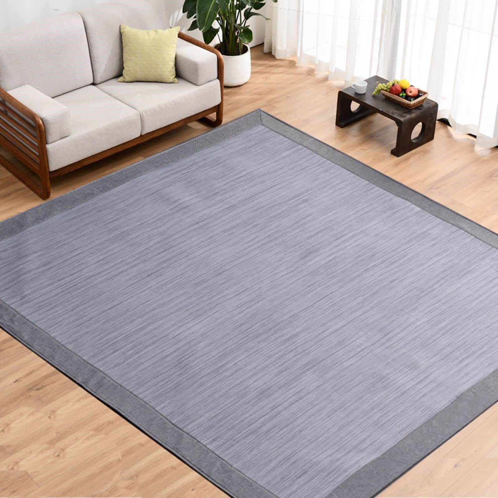 【フローリングを傷つけない】この接触冷感ラグの周囲は、耐久性と美しさのために幅 80 mm のカチオン生地です。夏用ラグの裏面は環境に優しい滑り止めデザインを採用し、滑り止め加工を施しているので、ラグの上で滑る心配はありません