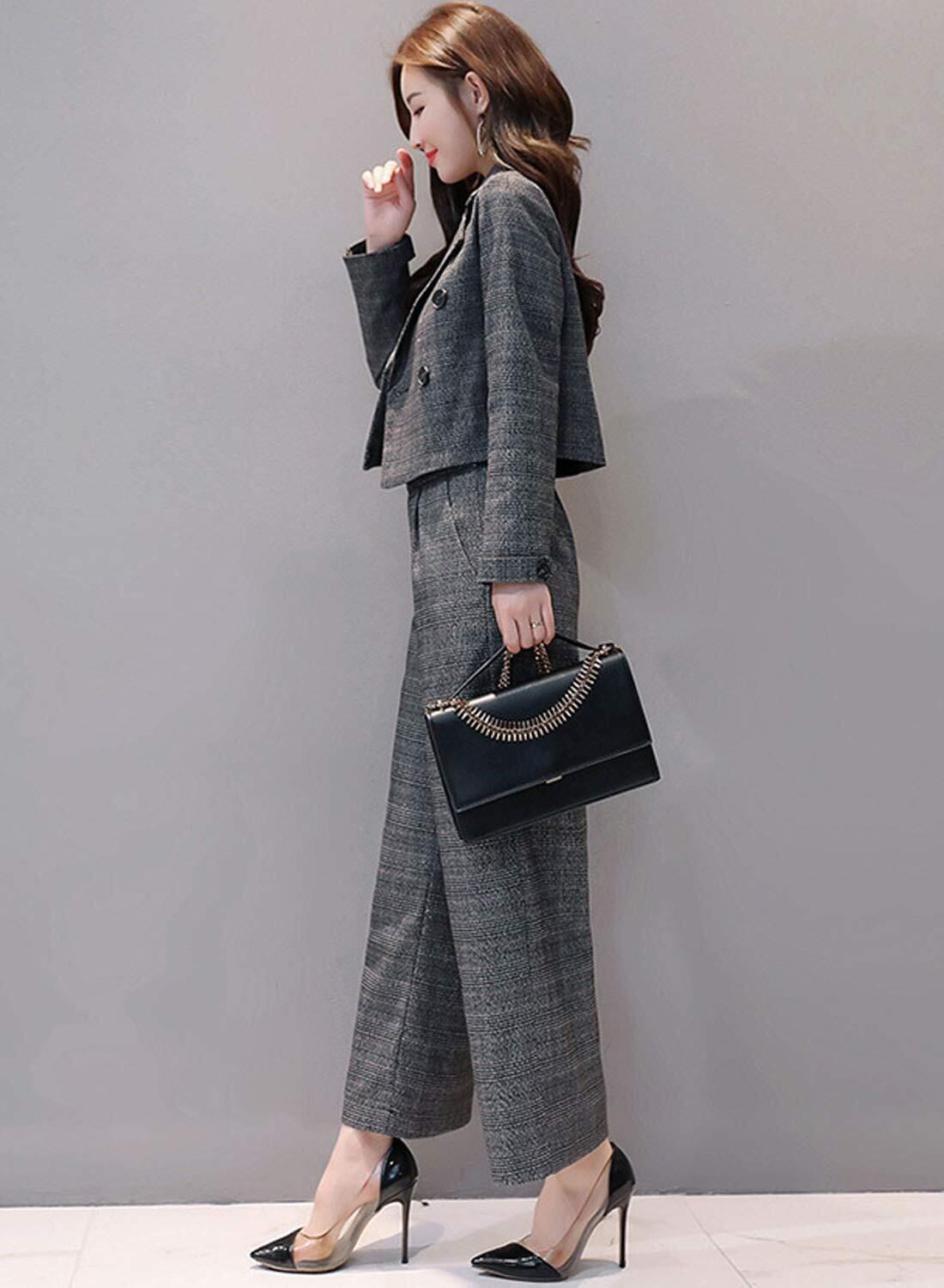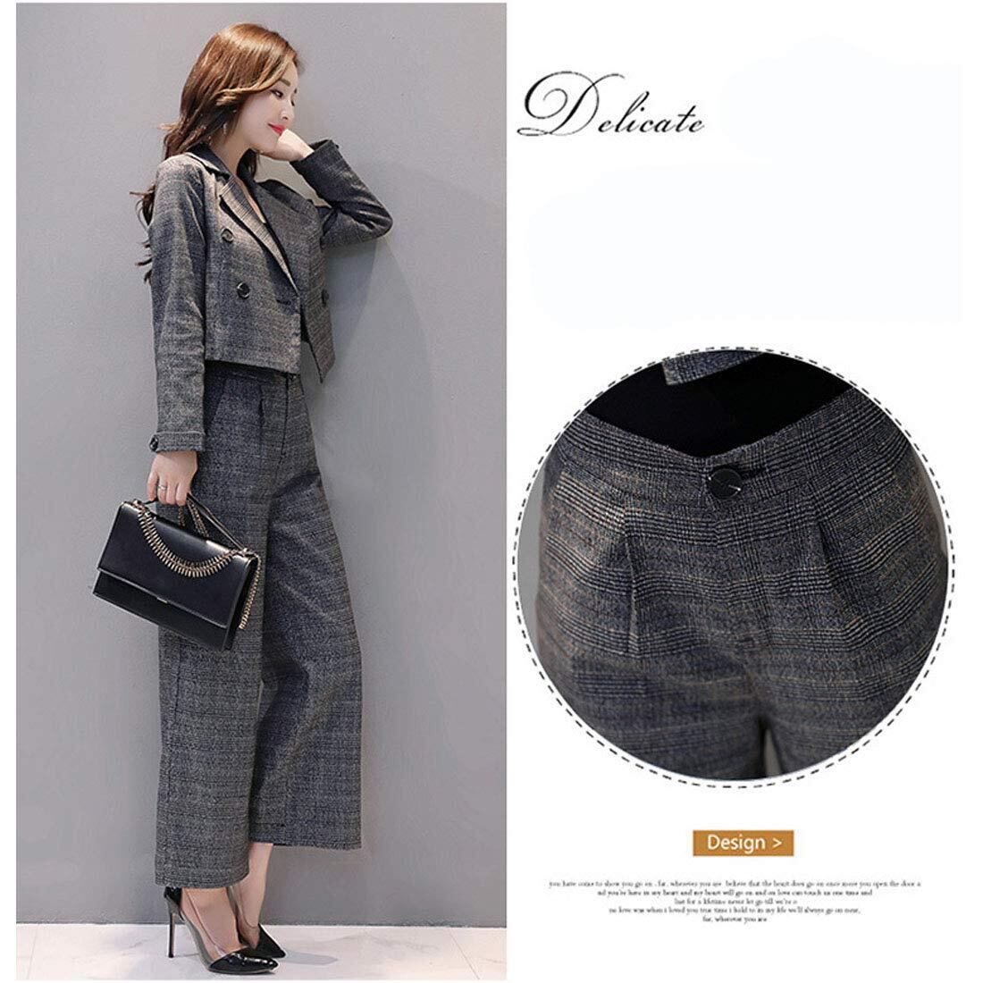 [Sueeya] (スイーヤ) スーツ レディース パンツスーツ 上下セット グレンチェック 着痩せ テーラード ファッション ワイドパンツ 九分 おしゃれ 2点セット 春 秋 冬 通勤 フォーマル OL