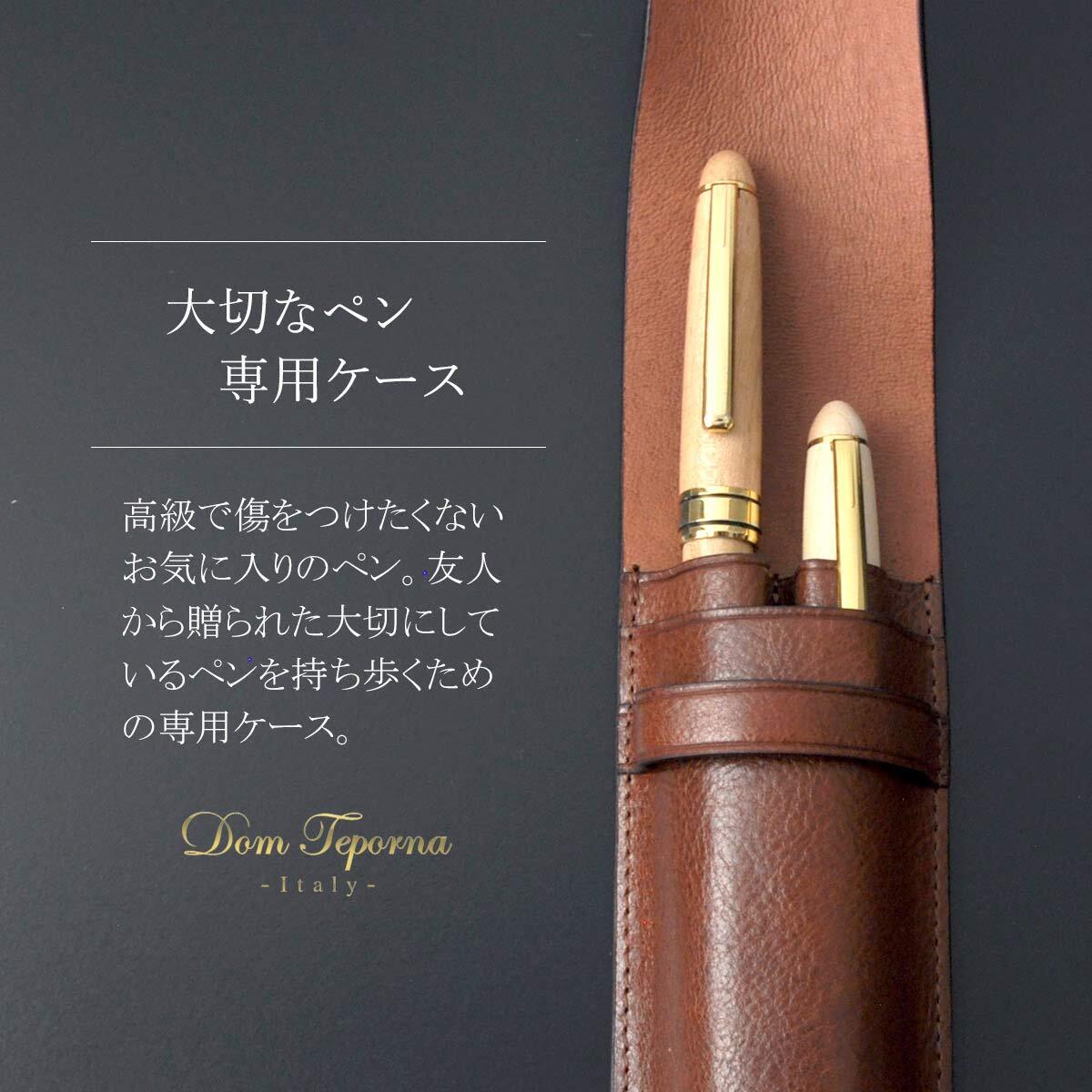 [Dom Teporna] 本革 ペンケース 2本差し 万年筆 シンプル おしゃれ イタリアンレザー コンパクト 筆箱 ペンホルダー 文房具 ブラック/2本差し