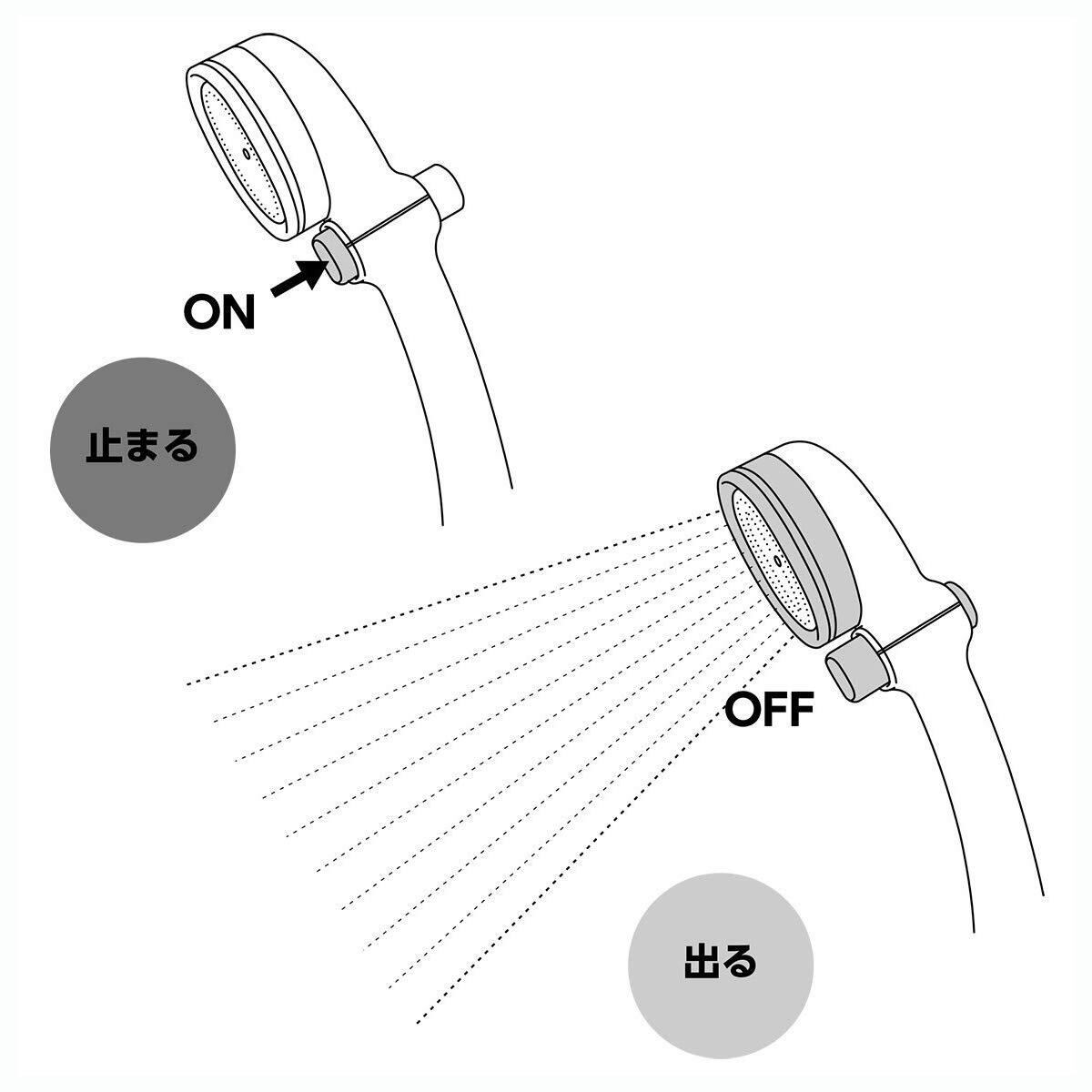 水圧が低くてもシャワーに勢いをプラスすることができる節水低水圧タイプで、手元でお湯の止水もON/OFFで切り替えられます。