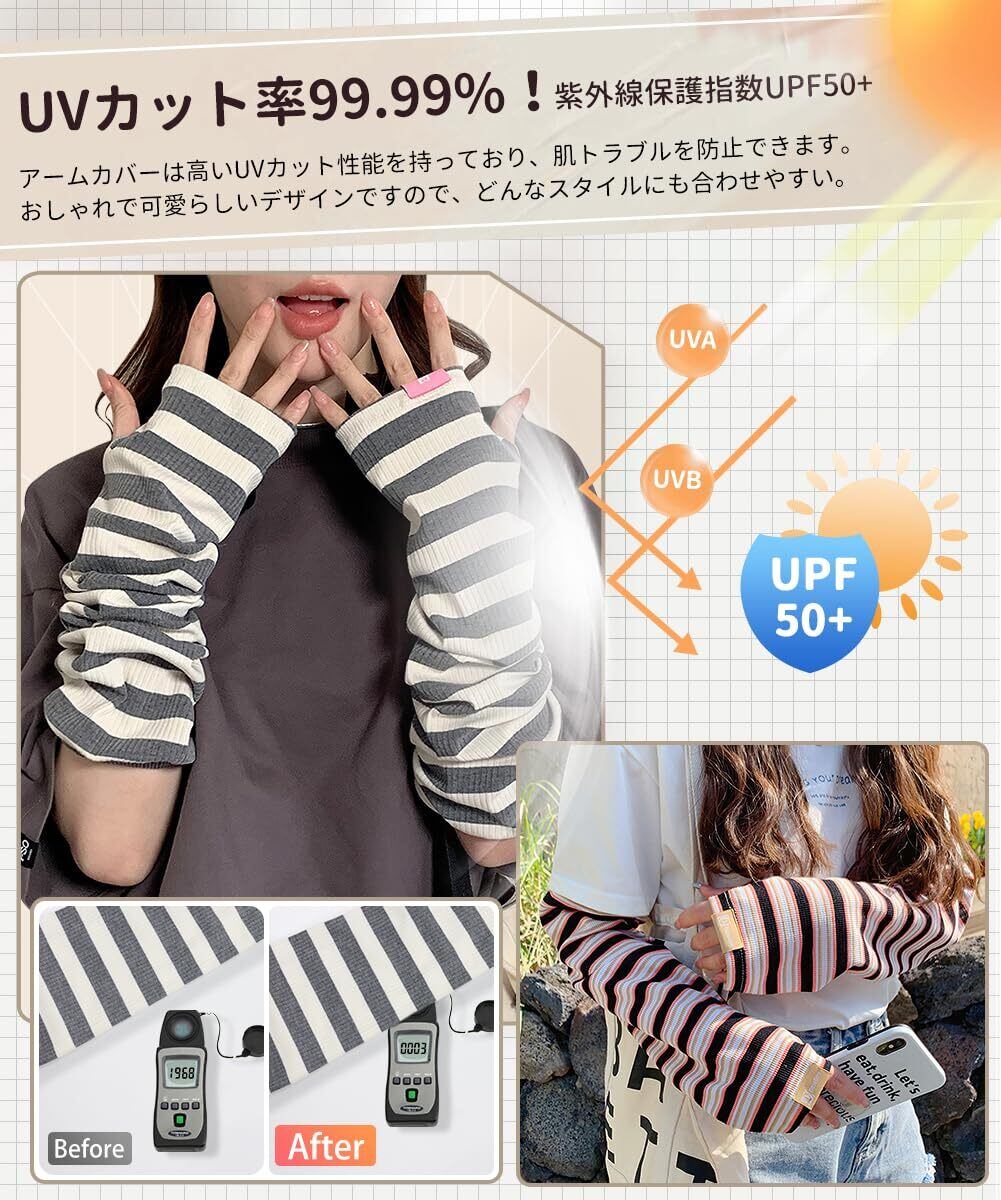 [SLEEPSINERO] アームカバー レディース かわいい UV 夏 アームスリーブ 【手の甲まで日焼け止め・紫外線対策・ひんやり冷感】 ゆったり UPF50+ UVカットアームカバー 可愛い ロング丈 指穴あり ズレ防止 UV腕カバー 四季