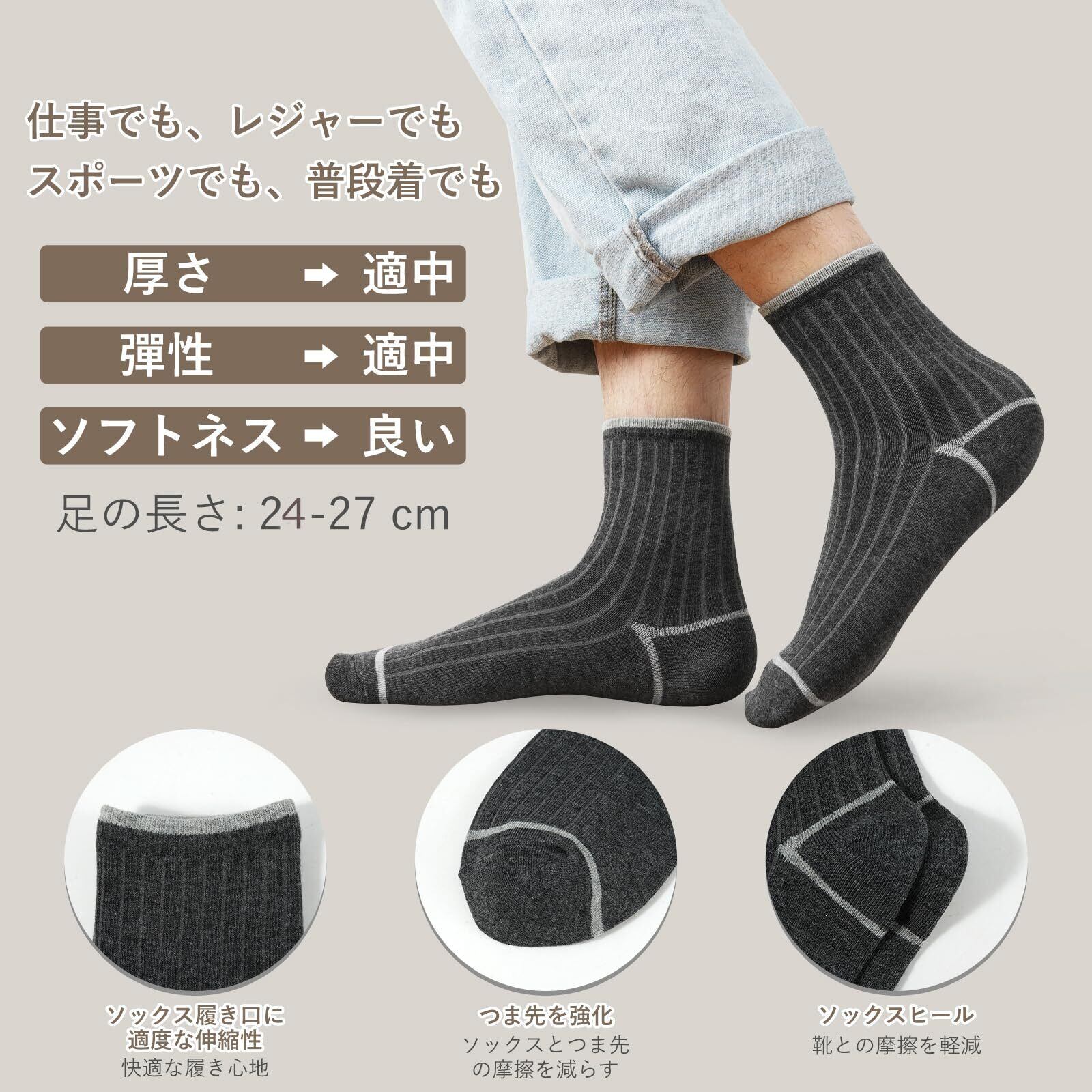 【綿防臭・吸汗・快適性夏用も蒸れない靴下】リブ編みタイプの生地履きやすい靴下!良質な80%コットンを使用し、防臭綿を施しておりますので、汗を速やかに吸収し、足を乾燥させ、細菌や臭いの発生を抑制します。 速乾性や防臭に優れていながら柔らかく快適着用感を体感出来ます。蒸れやすい夏場でも、素早く汗を吸収して、外部に放出することで、足を快適でドライな状態に保ってくれます。また一体化した縫製を採用し、かかと部と靴との摩擦を軽減して快適で耐久性も優れています。