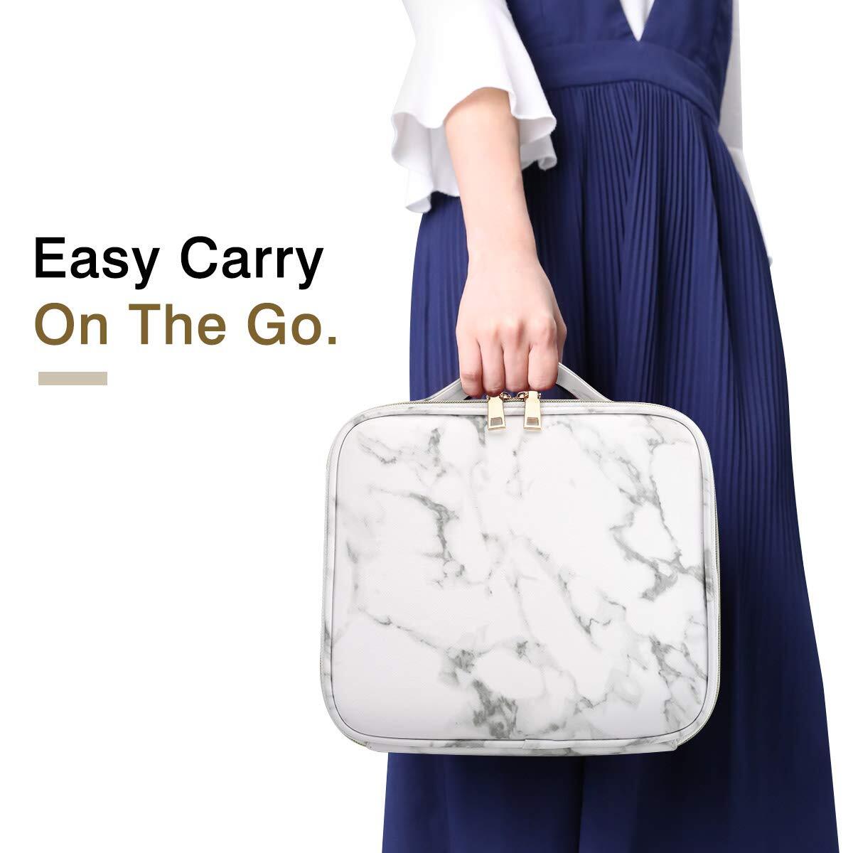 プロ用 メイクボックス Luxspire コスメボックス メイクブラシバッグ 化粧ポーチ コスメポーチ メイクポーチ 仕切り 持ち運び 防塵 收納 置き方調整可能 通勤・出張・旅行用 機能的收納 大容量 置き方が調整できる 衝撃吸収 化粧品収納 収納ケース 大型 母の日 White Marble