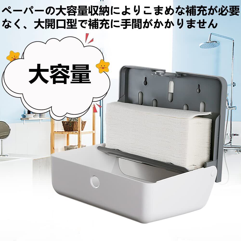 【素材】樹脂製のため、水回りのご使用が可能です。汚れた際は拭き掃除ができます。シンプルなデザインのため設置する場所を選ばず、トイレ・キッチン・洗面台などにおすすめです。家庭用としてだけでなく業務用としてもお使いいただけます。ペーパータオルがホルダーに覆われている状態のため、水ハネなどで中のペーパーが濡れる心配がなくお使いいただけます。
