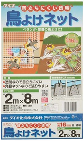 目立ちにくい透明鳥よけネット 2m×8m 白 252249