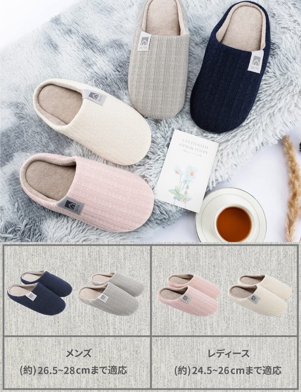 【SLITA】スリッパ 室内 来客用 ルームシューズ レディース メンズ 防水 滑り止め 室内履き 洗える 静音 柔らかい あったか 2足セット 4足セット