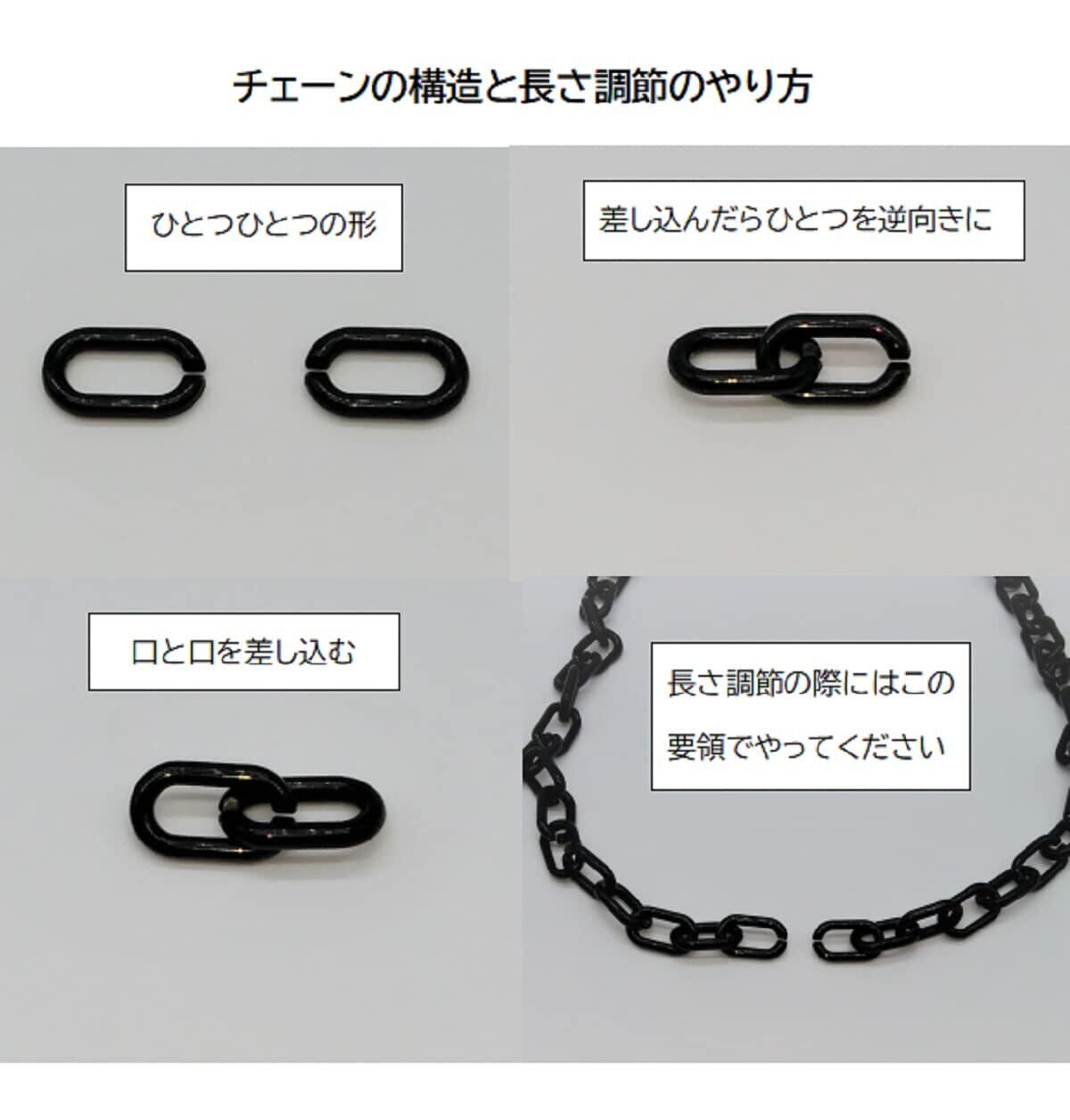※写真にあるトルソーがかけているのがこの製品(48輪)です。「モデルさんのは32輪」というサイズ感です。 ※写真にあるチェーンの輪の構造、外し方と付け方をご覧ください。