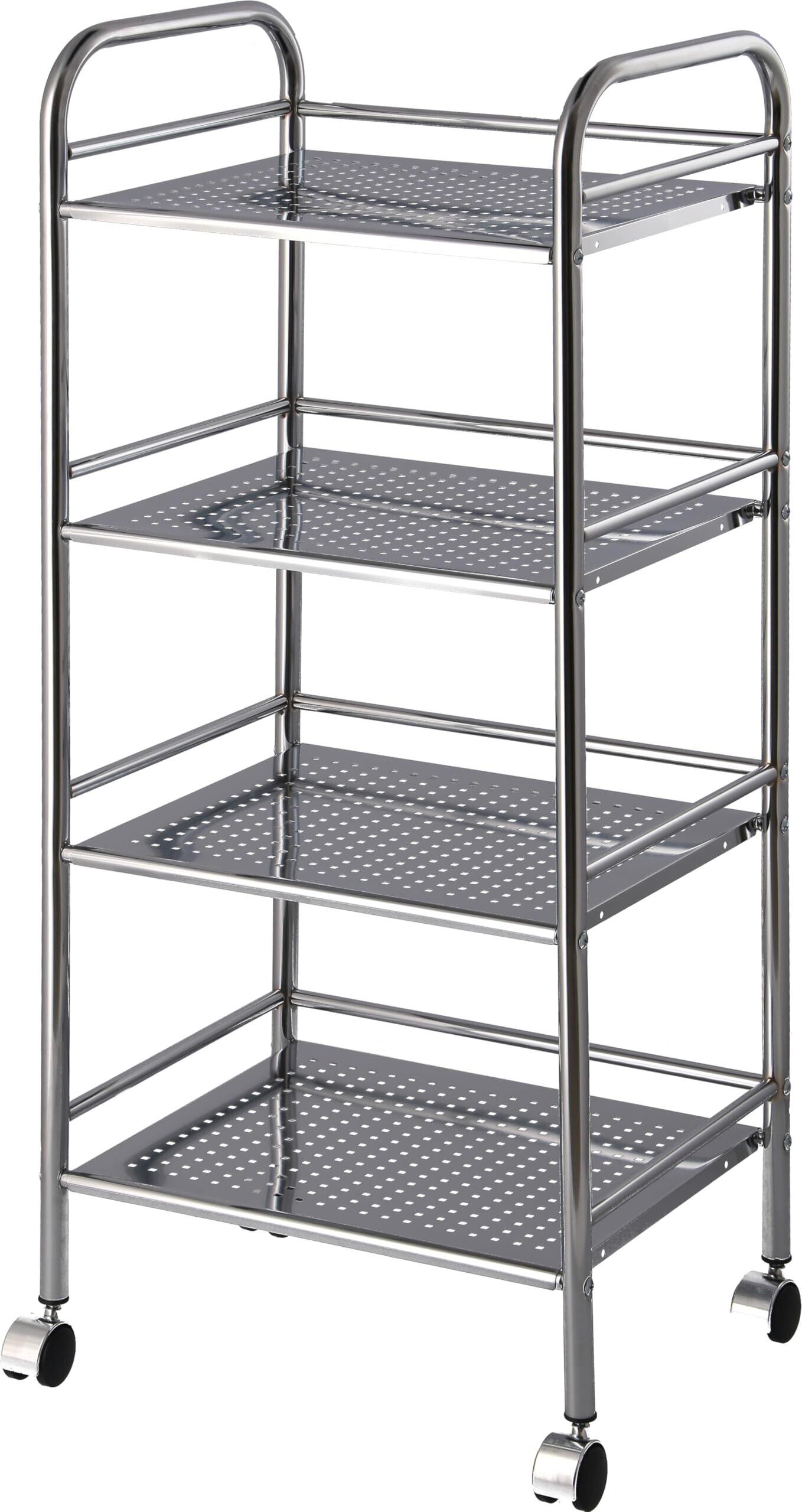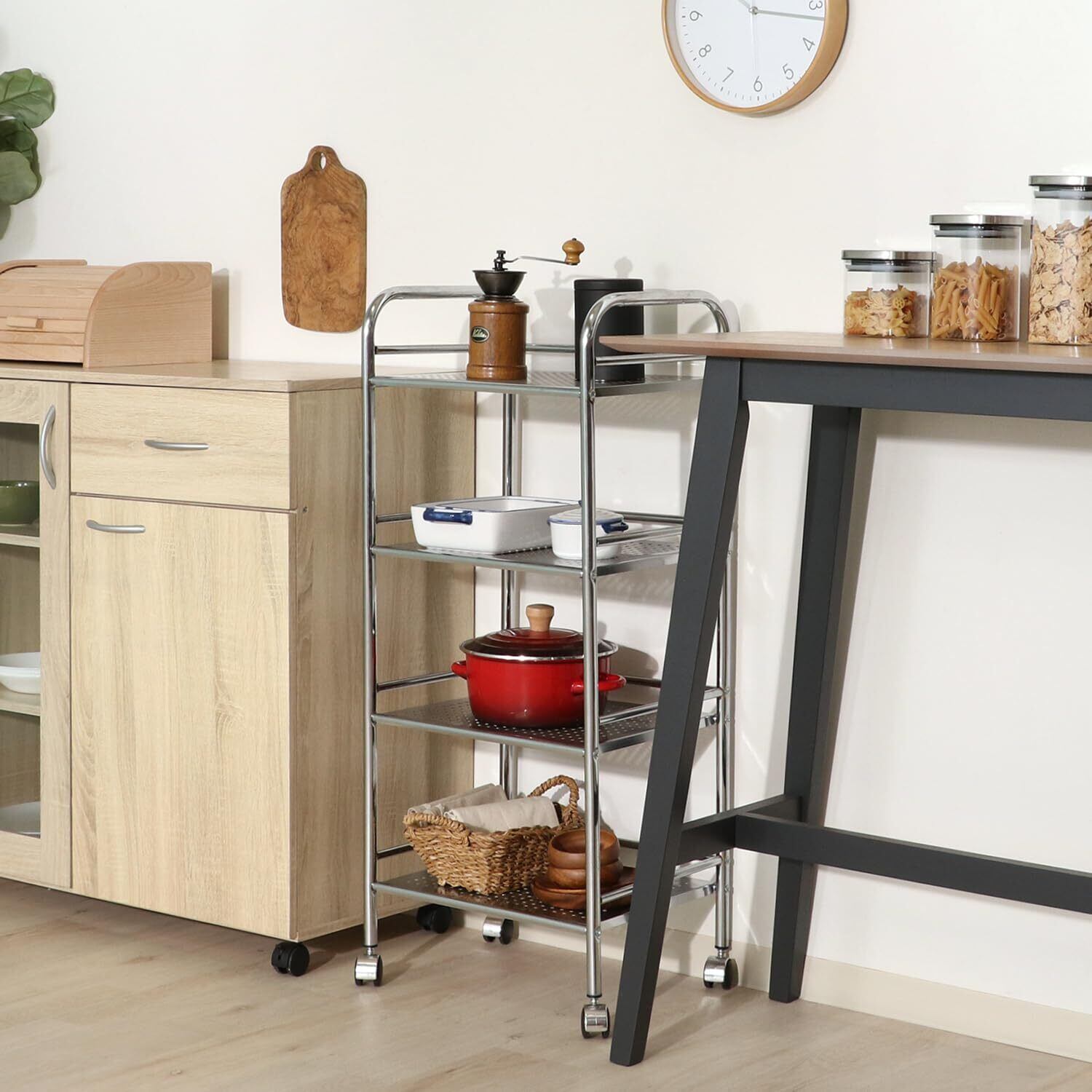 不二貿易 キッチンワゴン ラック 4段 幅40×奥行32×高さ97.5cm シルバー キッチン収納 スチール キャスター付き 組立商品 93399