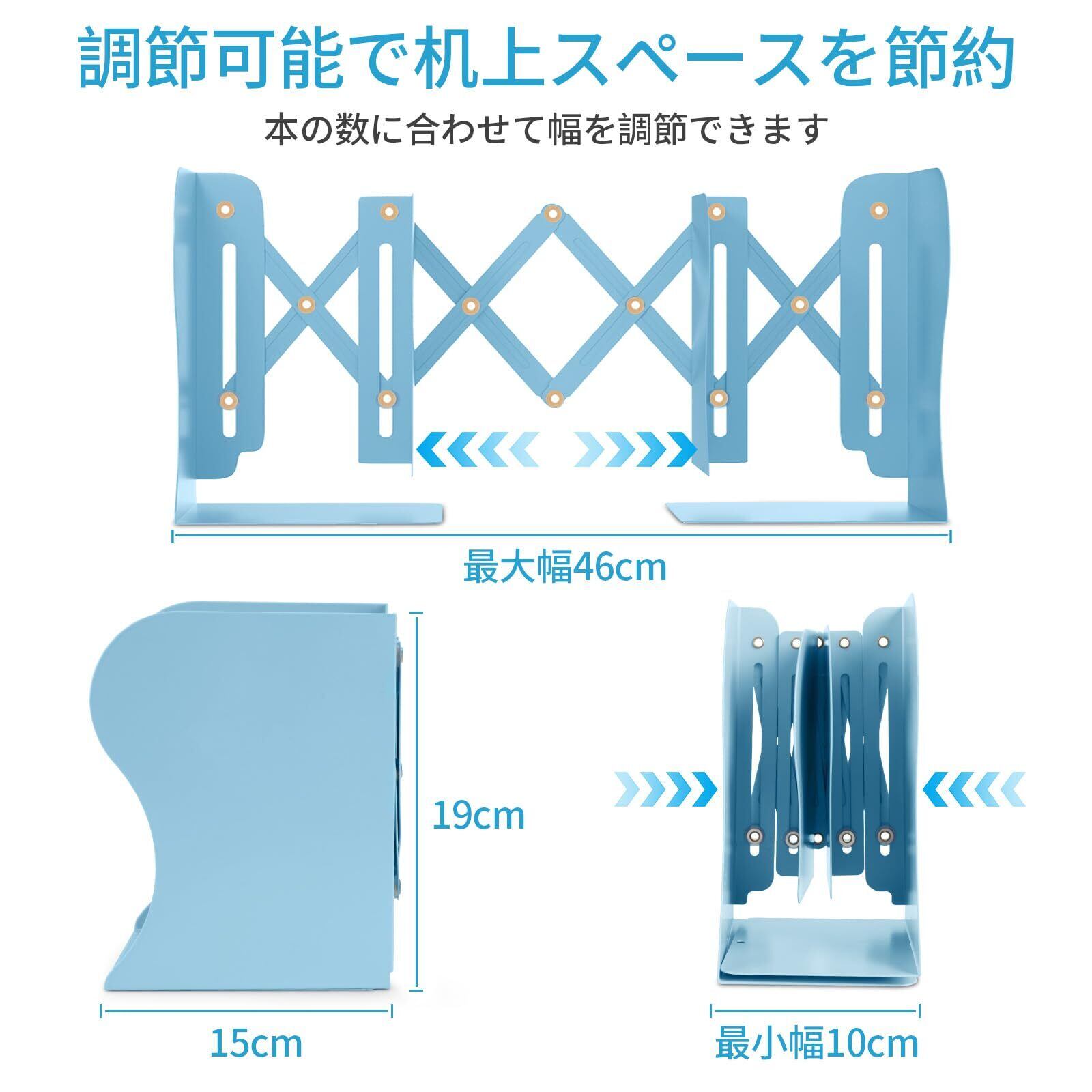 ALIOBC ブックエンド伸縮できる 本立て 滑り止め ブックスタンド 倒れない 仕切り オシャレ 本棚卓上 書籍 A4ファイル 事務用品 文房具 オフィス収納 整理整頓 金属製 ライトブルー