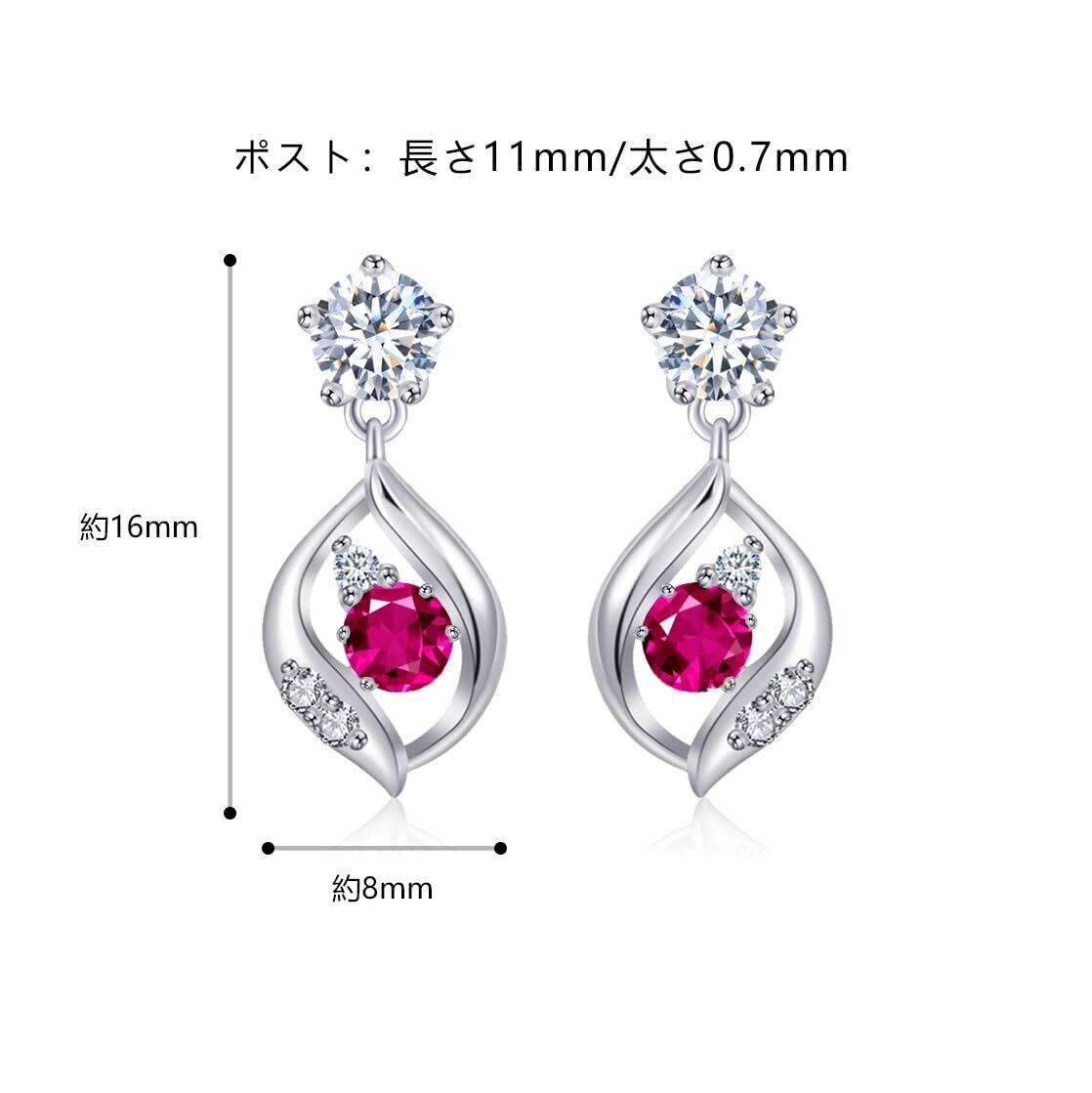 製品詳細:2個販売。ピアスサイズ:(縦)約16mm/(横)約8mm。素材:合成 ルビー(約 0.3カラット/粒)、5A 最高品質 ジルコニア、金属アレルギー対応の材質。付属品:精巧な包装ケース、専用布、ベロア調ポーチ、シルバー925キャッチ、シリコンキャッチ