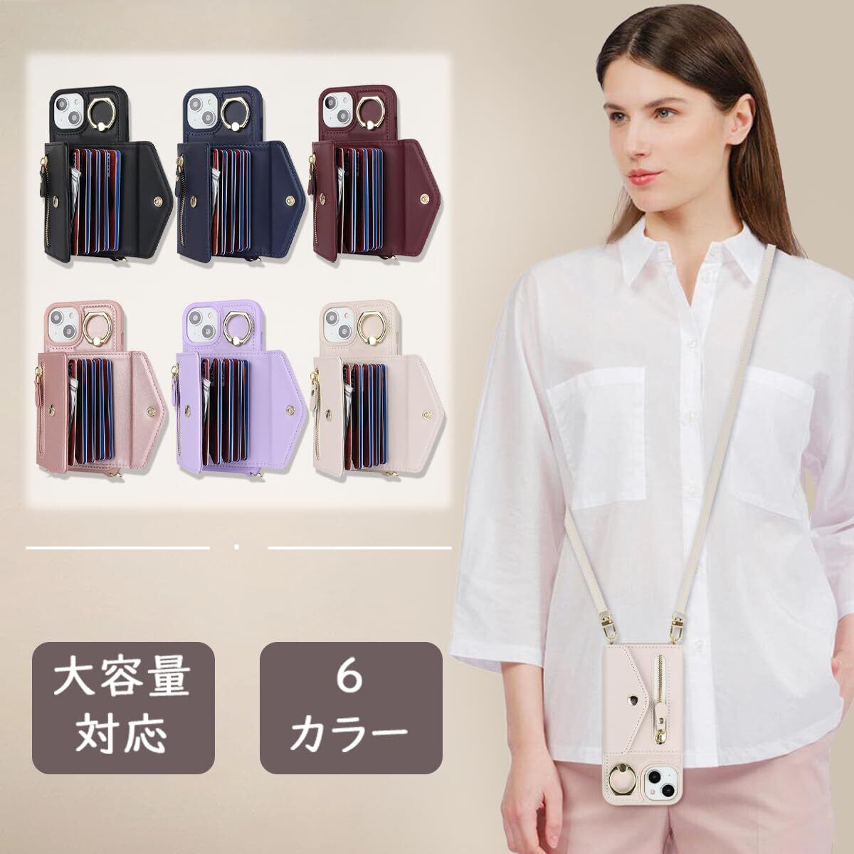 【Hamany】 いphone14 ケース スマホ ショルダー スマホケース iphone 14 ショルダー おしゃれ カード収納 大容量 背面 リング付き スタンド機能 いphone13 ケース 手帳型 耐衝撃 耐久性 女性 肩がけ 首掛け 斜め掛け ストラップ付き 長さ調整可能 カバー -アンバー ホワイト