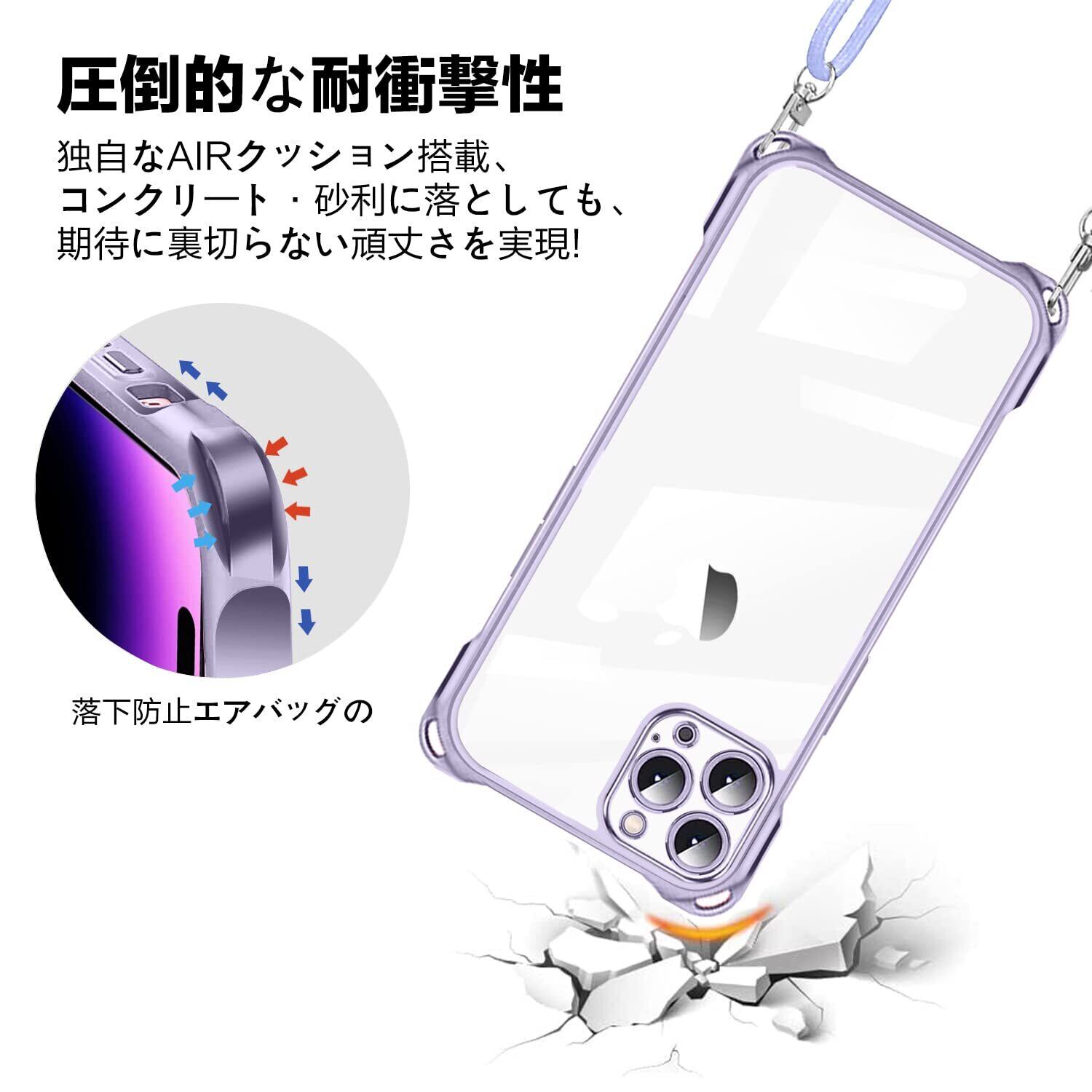 iPhone 14 Pro 用 ケース クリア ショルダー iPhone14pro 用 スマホケース アイフォン14Pro カバー 肩掛け 斜めかけ 縄掛けケース 透明 薄型 軽量 耐衝撃 TPU ストラップ付き 携帯ケース 紐付き 斜めがけ 織りストラップ付き ネックストラップ ショルダー ケース 縦/横 2WAY 長さ調整可能 取り外し可能 落下防止 紛失防止 ワイヤレス充電対応 (パープル)