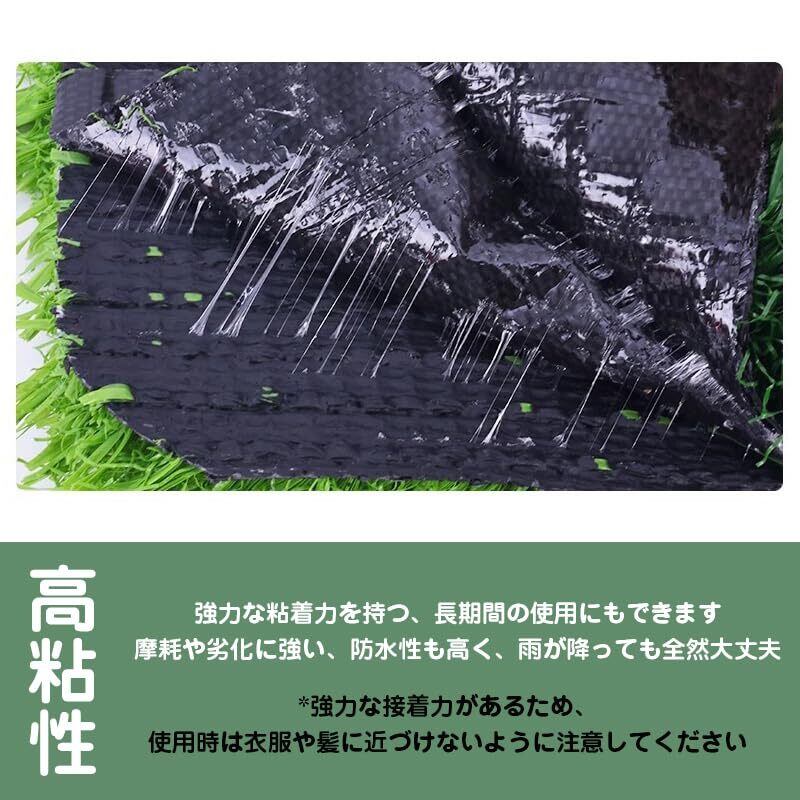 【長く使用】:この人工芝接合テープは、長期間の使用に耐えるよう設計されており、摩耗や劣化に強いです。防水性も高く、雨が降っても心配ありません。高品質な材料を使用しているため、使用環境に左右されず、長く安定して使用することができます。