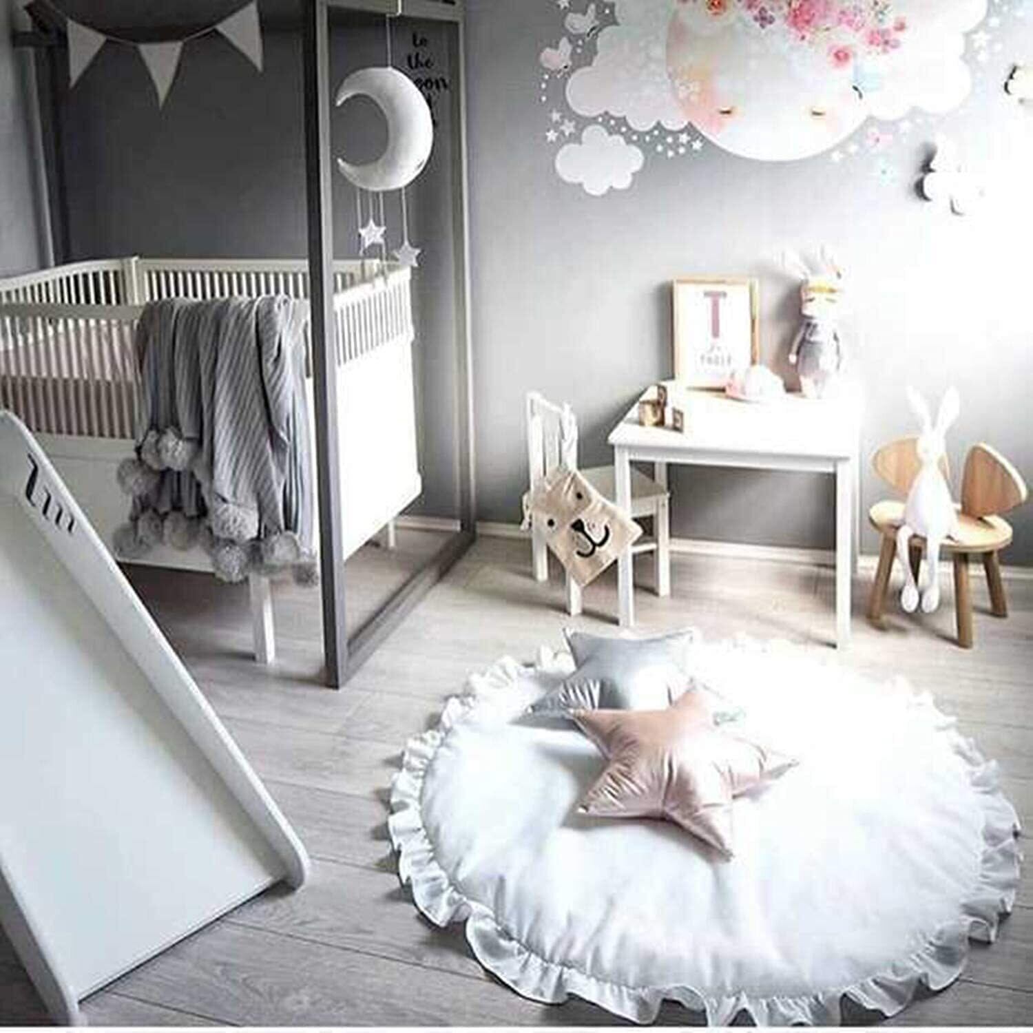 ORFINA ベビープレイマット 円形 ベビーマット おしゃれ 遊びマット ラグマット サークルマット ベビークロールマット 柔らかい 綿 毛布レース パッド 超ソフト 四季兼用 水洗い可能 取り外し可能 ふんわり 厚手 赤ちゃん ギフト ベビー 赤ちゃん キッズ 抗菌加工 約直径100cm ファスナー付き (ホワイト)