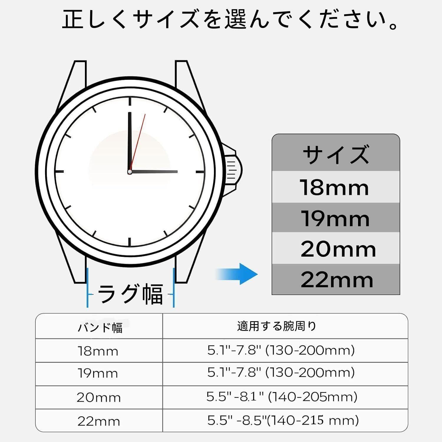 【サイズ】ラグ幅 18mm 19mm 20mm 22mmの腕時計やスマートウォッチに適用。注文前に腕時計のラグ幅をご確認ください。