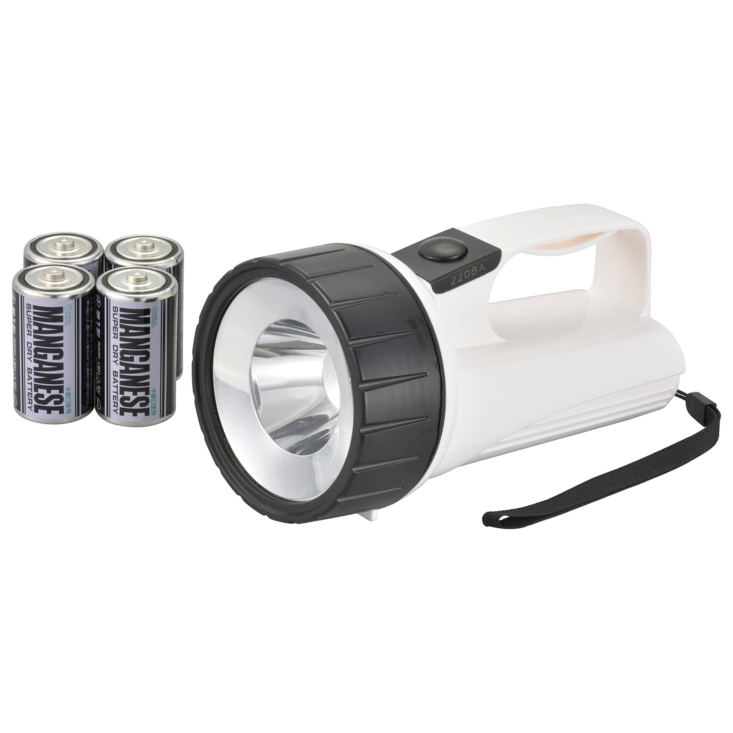 オーム電機 懐中電灯 LED強力ライト 防滴タイプ 屋外対応 単1形乾電池4本付き 60ルーメン ホワイト 白 E-5 08-1505 OHM
