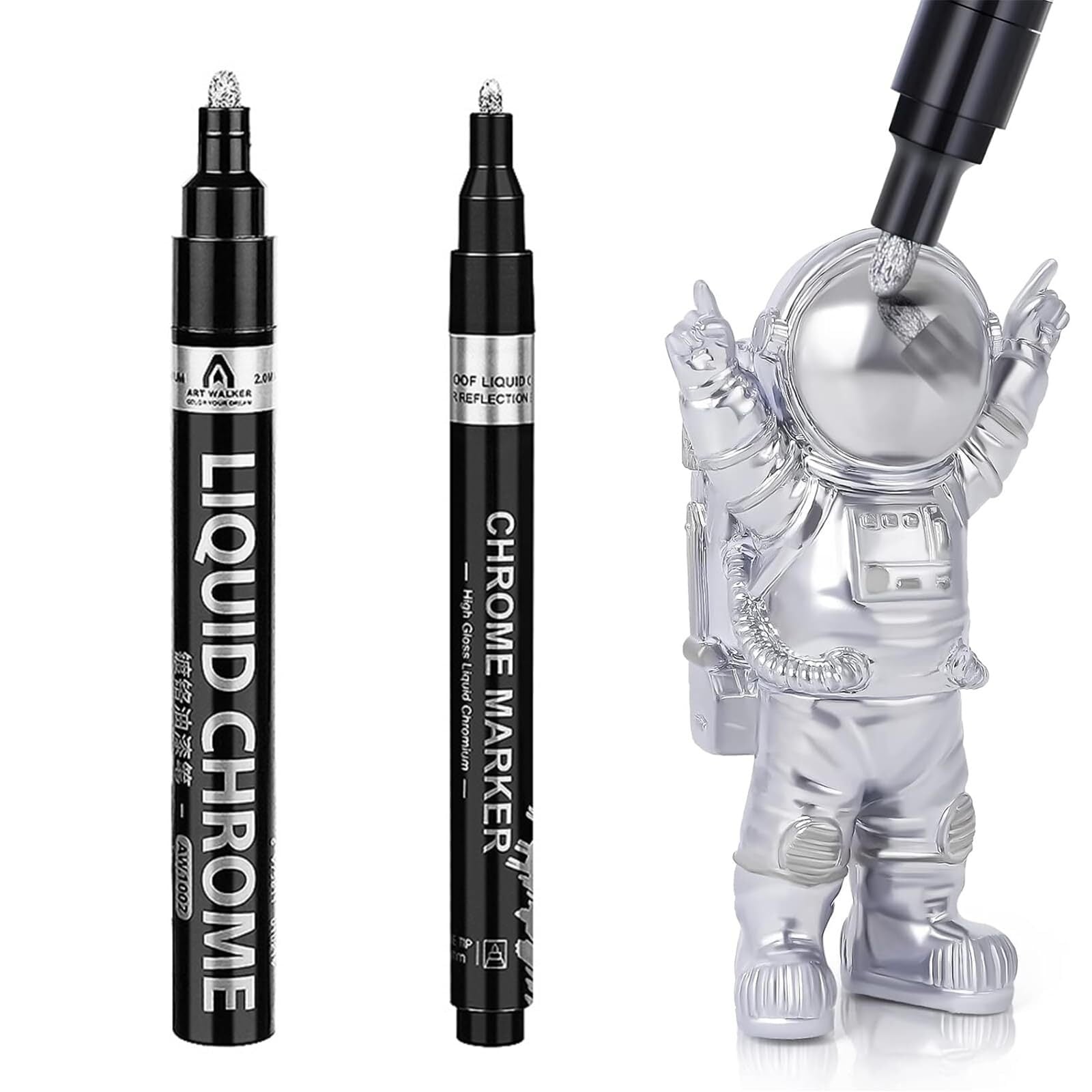 KALOLINNA 銀メッキ 補修ペン シルバードマーカーペン 2個セット DIY用品 塗るだけでメッキ 高光沢液体クロムペイントマーカー 長持ちする色 防水反射光沢メタリックマーカー 布 セラミック ガラス 木材 金属用 (シルバー 1mm+2mm)