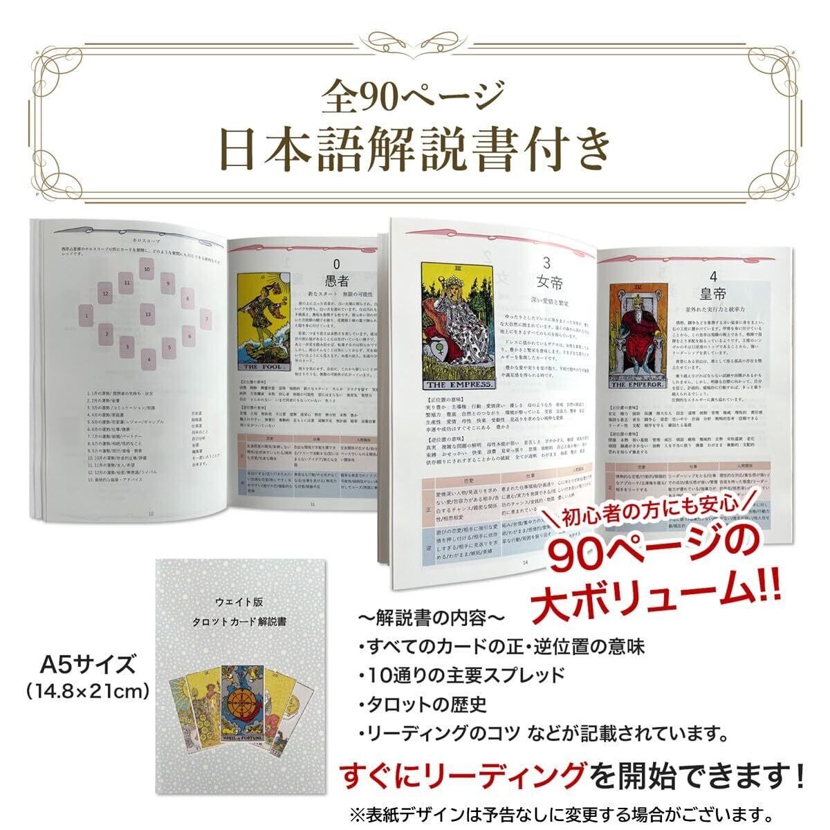 【日本語解説書付き】英語版の解説書の日本語翻訳解説書(全P35)がカードと一緒に梱包されています。それに加えて、日本語解説書90ページも付属されているので、すぐにリーディングを始めることができます。