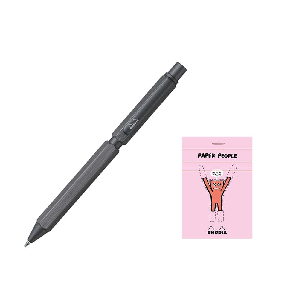 【 限定】ロディア 多機能ペン 『スクリプト マルチペン チタニウム』 ボールペン 油性 0.5mm 2色(黒・赤)&シャープペン 0.5mm アルミニウムボディ ヘアライン加工 ロータリー式 RHODIA No.11 ブロックロディア付き cf9371jjset