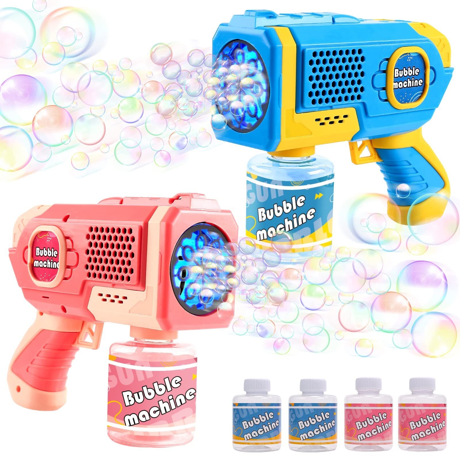 EagleStone シャボン玉 電動 おもちゃ バブルガン 2個セット 予備ボトル4瓶 8泡穴 LEDライト 手持ち 長距離発射 自動 バブルガンマシン 子供 結婚式 キャンプ 外遊び 誕生日プレゼント 女の子 男の子 ギフト (青粉セット)