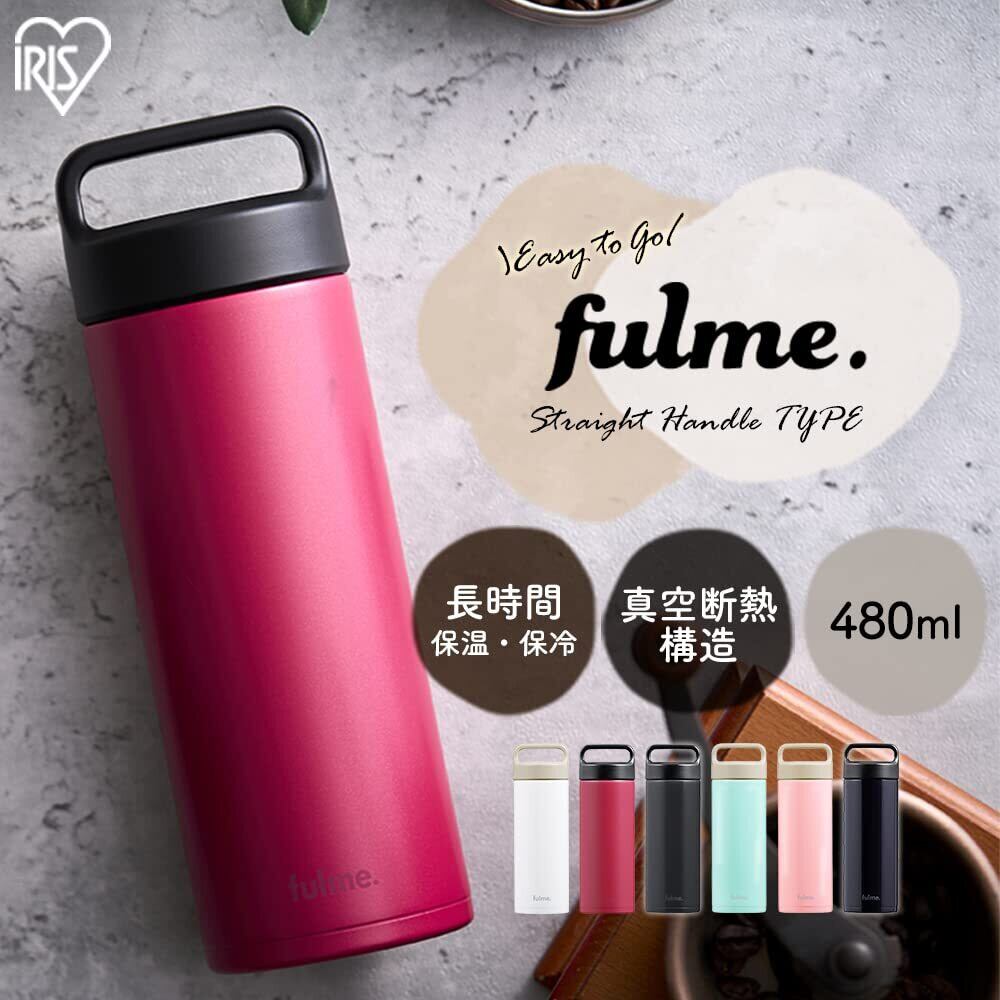 アイリスオーヤマ フルミー fulme 水筒 タンブラー マグボトル ステンレス 480ml グロッシーピンク 蓋付き ハンドル付き 持ち手 保温 保冷 真空断熱 ごくごく飲める飲み口 アウトドア スポーツボトル オフィス シンプル なめらかハンドル FM-SR480