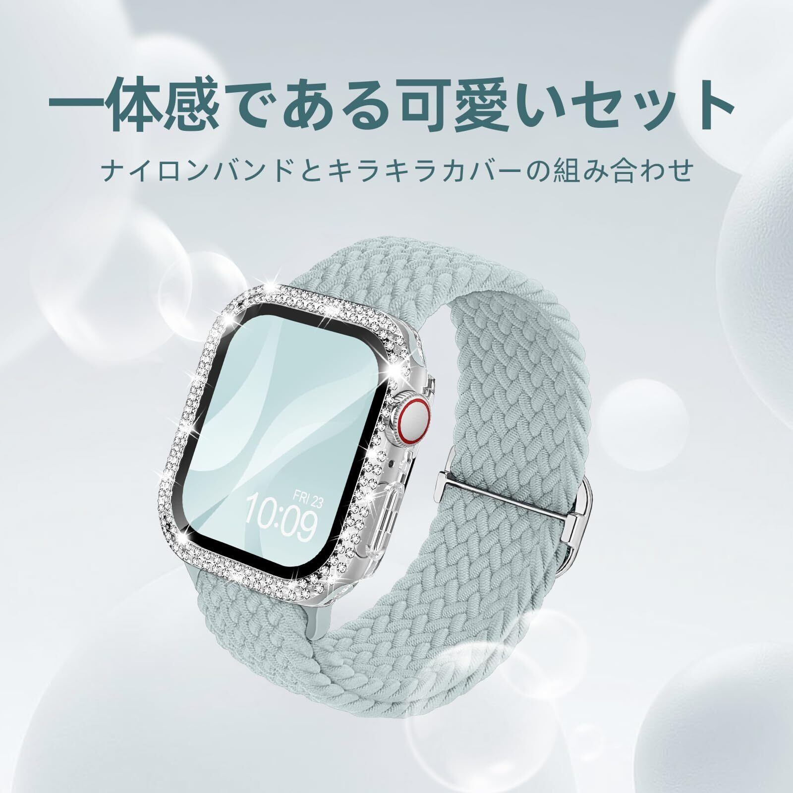 [Missair] コンパチブル Apple Watch バンド ナイロン アップルウォッチ バンド 編み込み ゴム Apple Watch キラキラ カバー付き ダイヤモンド 互換用のApple Watch バンドとケース 一体型 全面保護 オシャレ レディース (Series10 42mm)