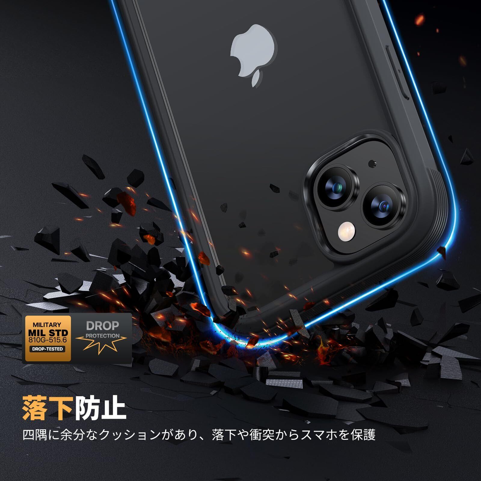 「360°フルボディで頑丈な保護」TPUとPCの2重構造で耐衝撃性に優れ、嵌め込み式バンパーと透明バックカバーの組み合わせにより、スマホ本体の美しさを邪魔しなく、頑丈な保護を提供します。スマホ本体をを囲む4つのコーナーが不意の落下からiphone15を保護します。