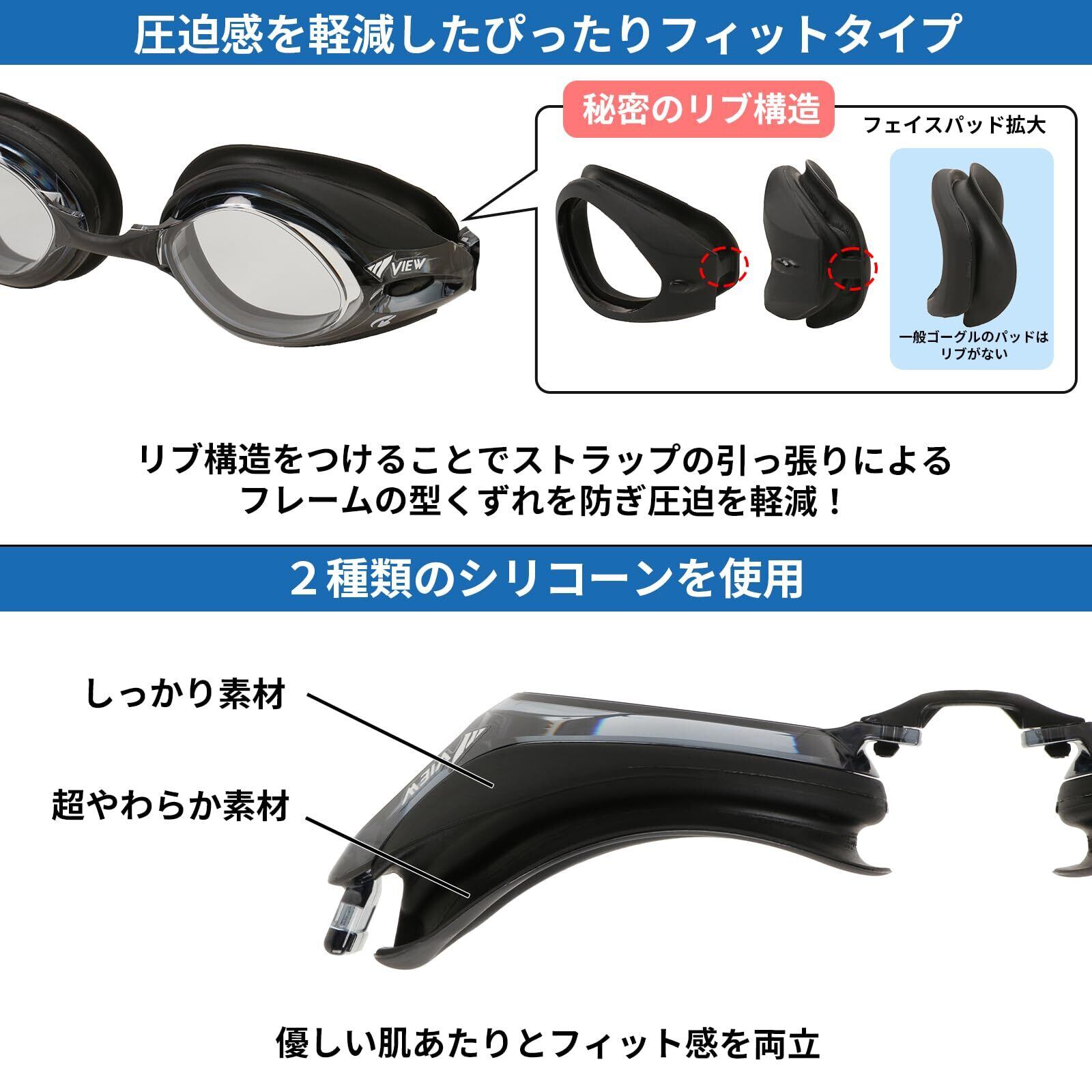 VIEW(ビュー) 日本製 スイミングゴーグル 大人用 目が吸われる感覚を抑えたフィットネスモデル こするだけのラクラクくもり止め機能付 V540SA