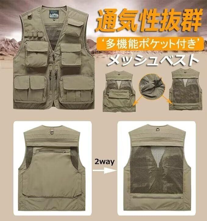 [inotenka] M~7XL メンズベスト 作業ベスト フィッシングベスト 春夏 アウトドア ベスト ナイロン ワークベスト 15ポケット 多機能 お釣 カメラマン 登山 撮影用 大きいサイズ 通気性 速乾性 メッシュ ベスト 秋冬