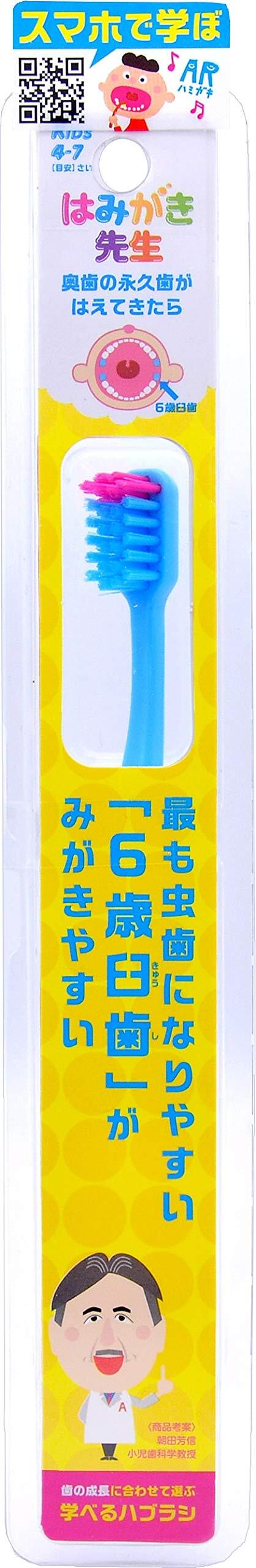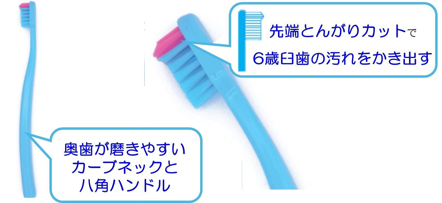 オカムラ はみがき先生 キッズ歯ブラシ 6歳臼歯用 奥歯の永久歯が生えてきたら 4本セット(各色2本づつ)