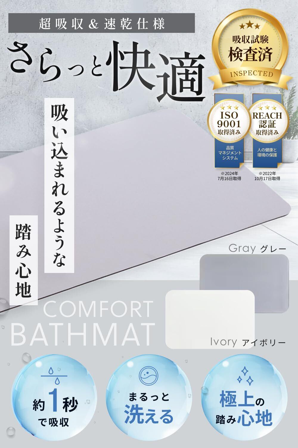 LIVARY【国内吸水試験実施済】 速乾&抗菌仕様 珪藻土マット 洗える 【クセになる踏み心地 】 簡単収納 吸水バスマット 洗える珪藻土 (グレー)