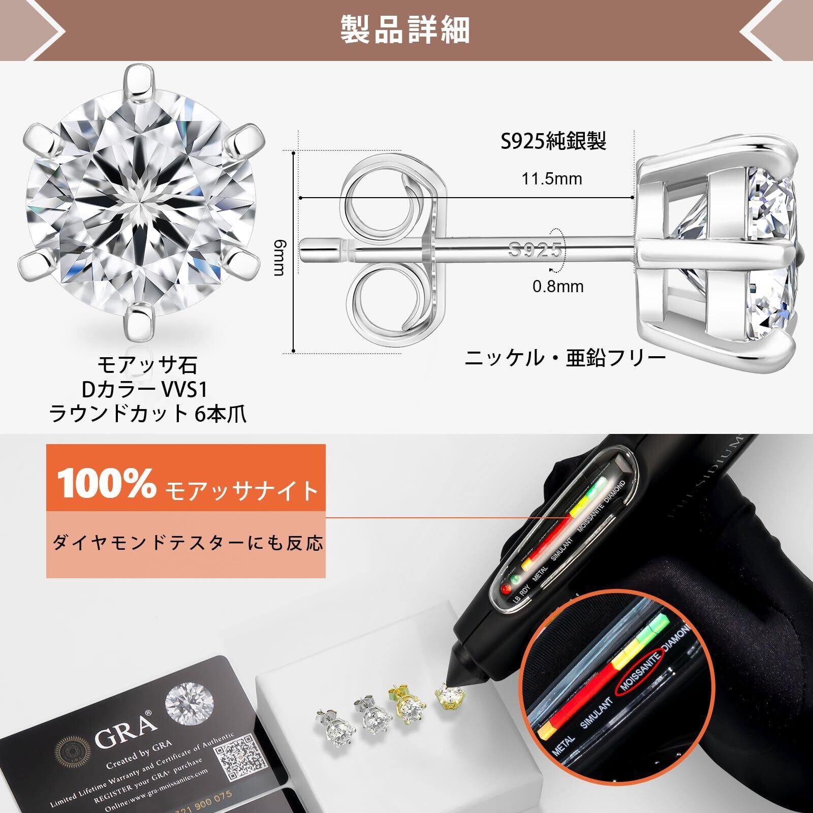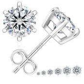 KRKC&CO モアッサナイト ピアス レディース: シルバー925 人工ダイヤモンド セカンドピアス シンプル 計0.6-3.0カラット 金属アレルギー対応 4本/6本爪 男女兼用 人気 ギフトボックス付き シルバー/ゴールド