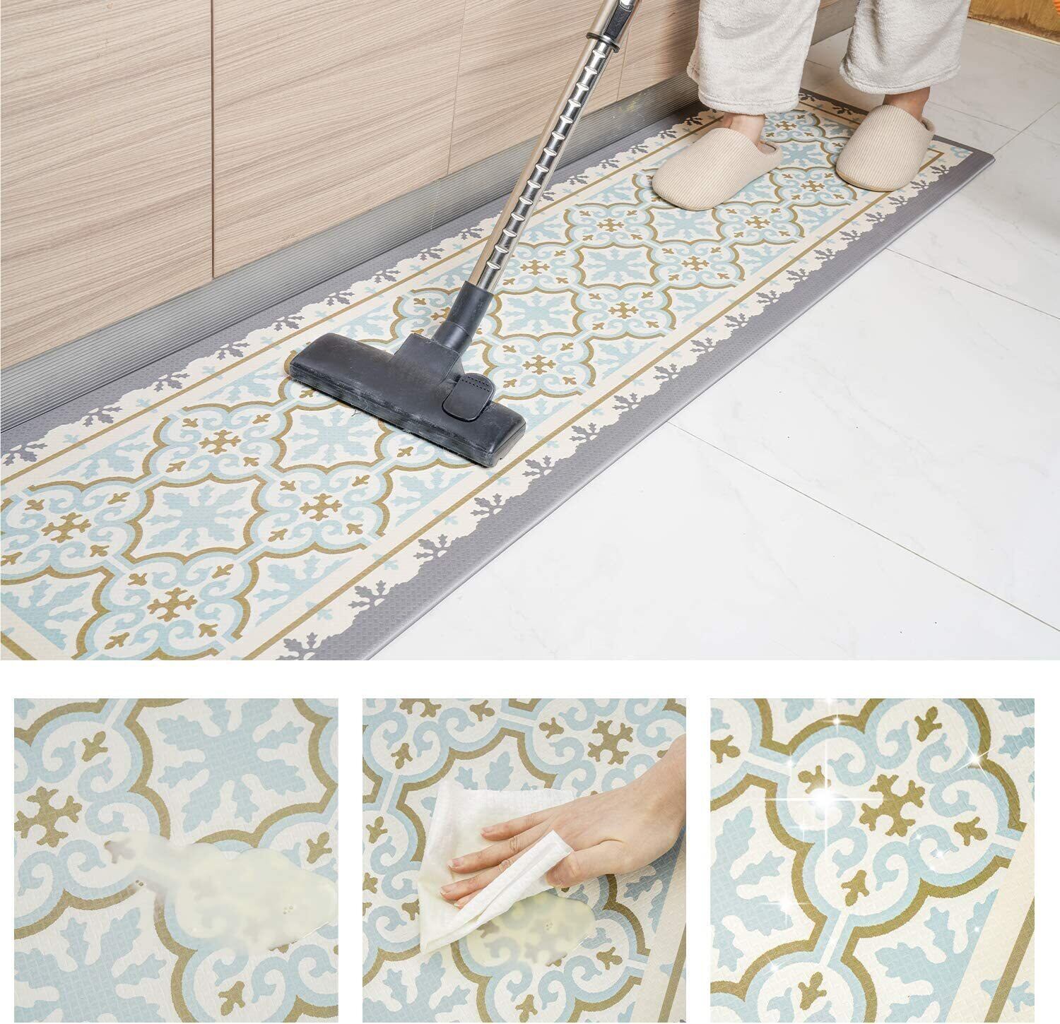 【厚いPVC】 足が疲れにく設計、もちもちの踏み心地でクッション性が高く台所マットです。長時間の立ち仕事も疲れにくい。このマットは素足でも、スリッパを履いたままでもいいです。物が落下しても衝撃を吸収し、床をキズやヘコミから守ります。