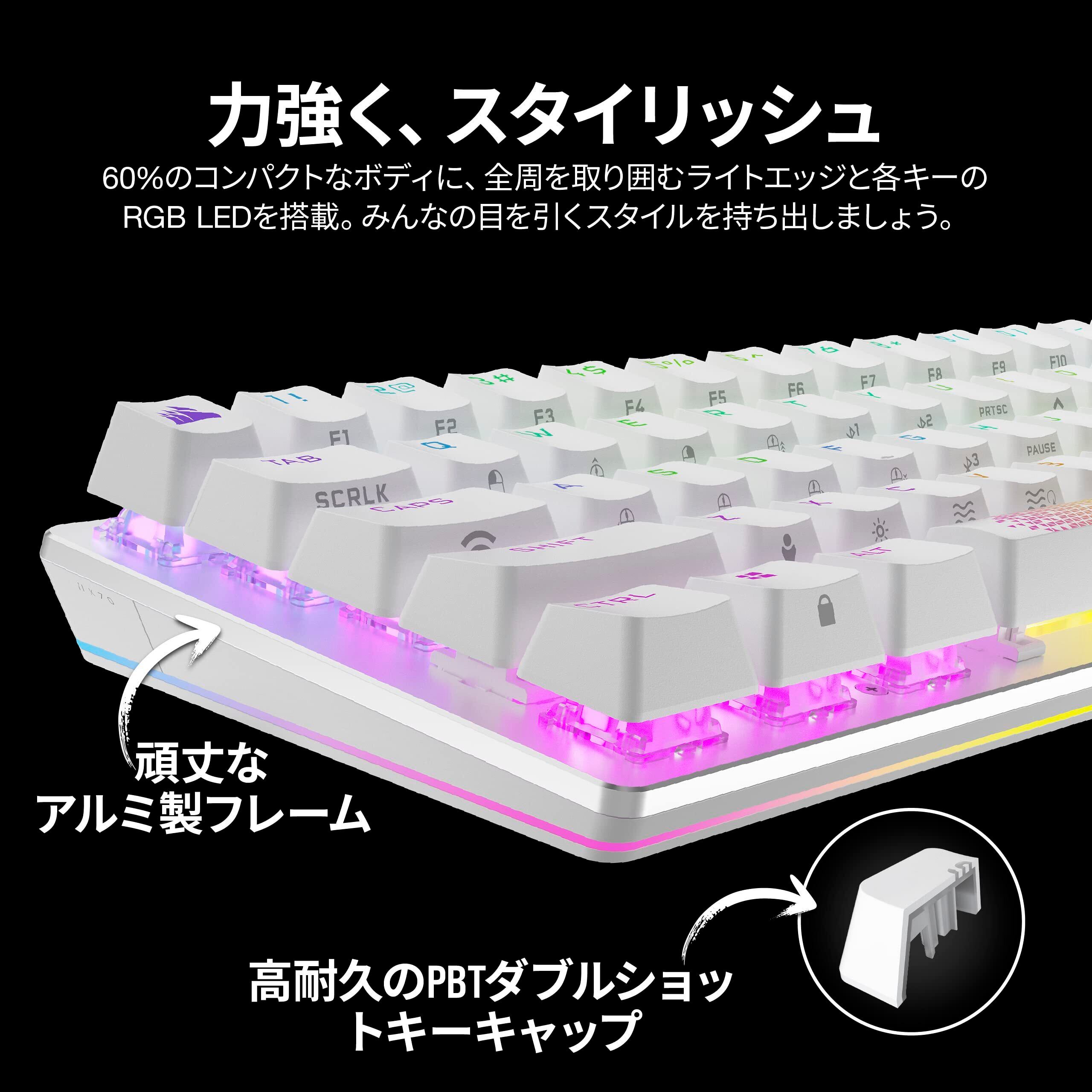 CORSAIR USB-A K70 PRO MINI RGB 60% ワイヤレスゲーミングキーボード ホットスワップキーボード ホワイト MX SPEED軸 CH-9189114-JP
