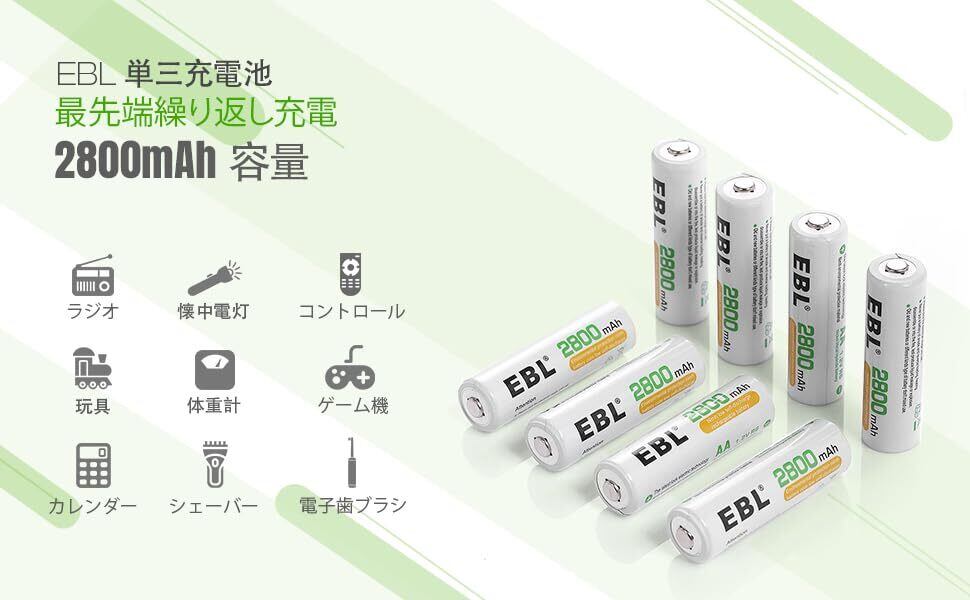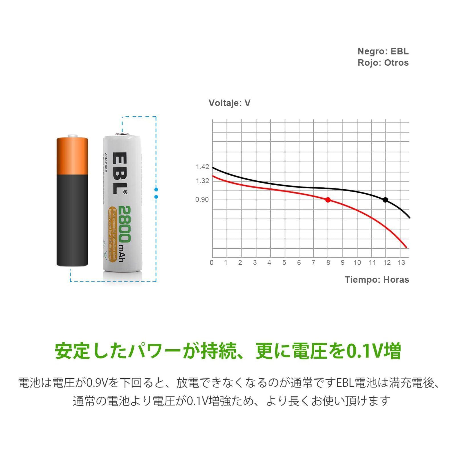 EBL 単3電池 充電式 2800mAh 単3充電池 16本パック 単三電池 充電式電池 収納ケース付き充電池 単3 単三充電池
