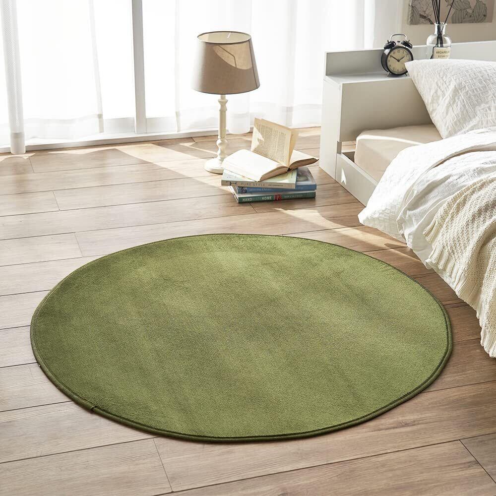 アイリスプラザ フランネルラグ グリーン 円形 200㎝ 滑り止め付き ラグ 洗える ラグカーペット マット カーペット対応 防ダニ フランネル さらフワ触感 おしゃれ 北欧 じゅうたん