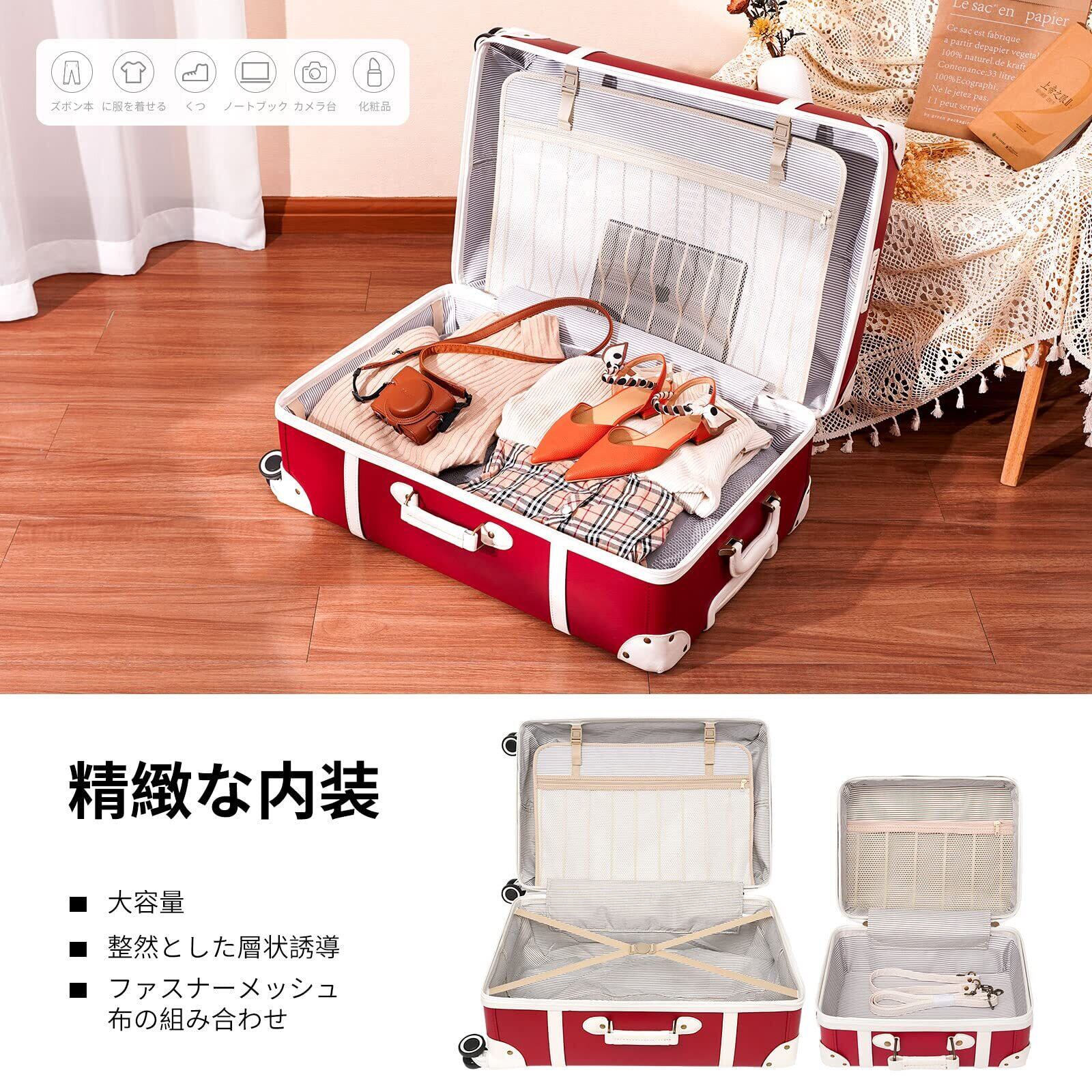 [NZBZ] スーツケース 手作り キャリーバッグ 軽量 トランクケース ア トランク おしゃれ かわいい キャリーバッグ 出張 修学旅行 TSAロック (レッド, S(20") 型+XS(14") 型)