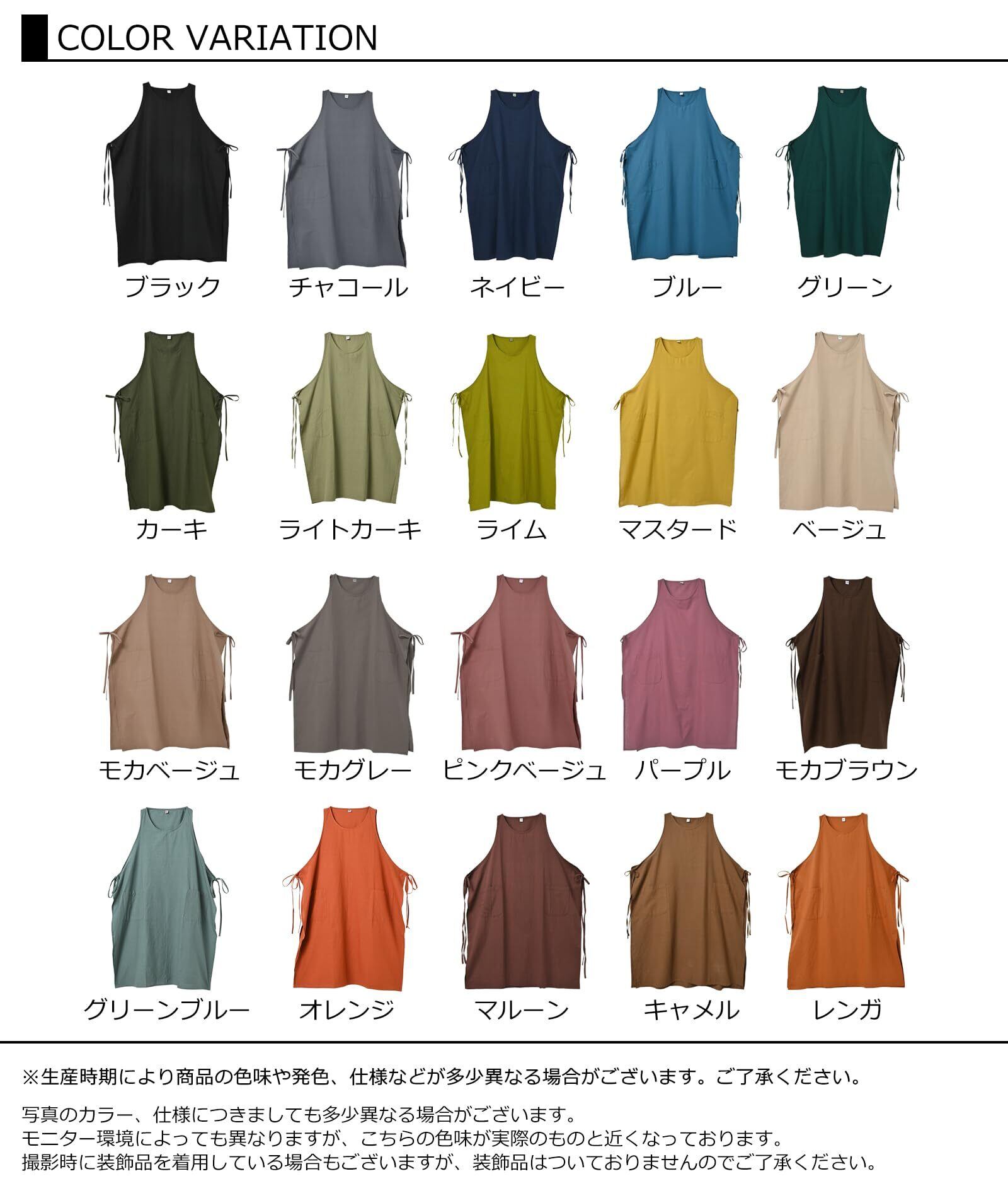 【ポイント】ラウンドネックで広く開いた胸元が魅力のデザインは、ストンとかぶりやすく、大きめポケット付き。サイドリボンでシルエット調節が可能で、程よいミドル丈がスタイルアップを叶えます。ボトムスとも馴染みやすく、しっかりとした「Cotton100%素材」で快適な着心地です。シンプルながら機能性抜群の一枚です。