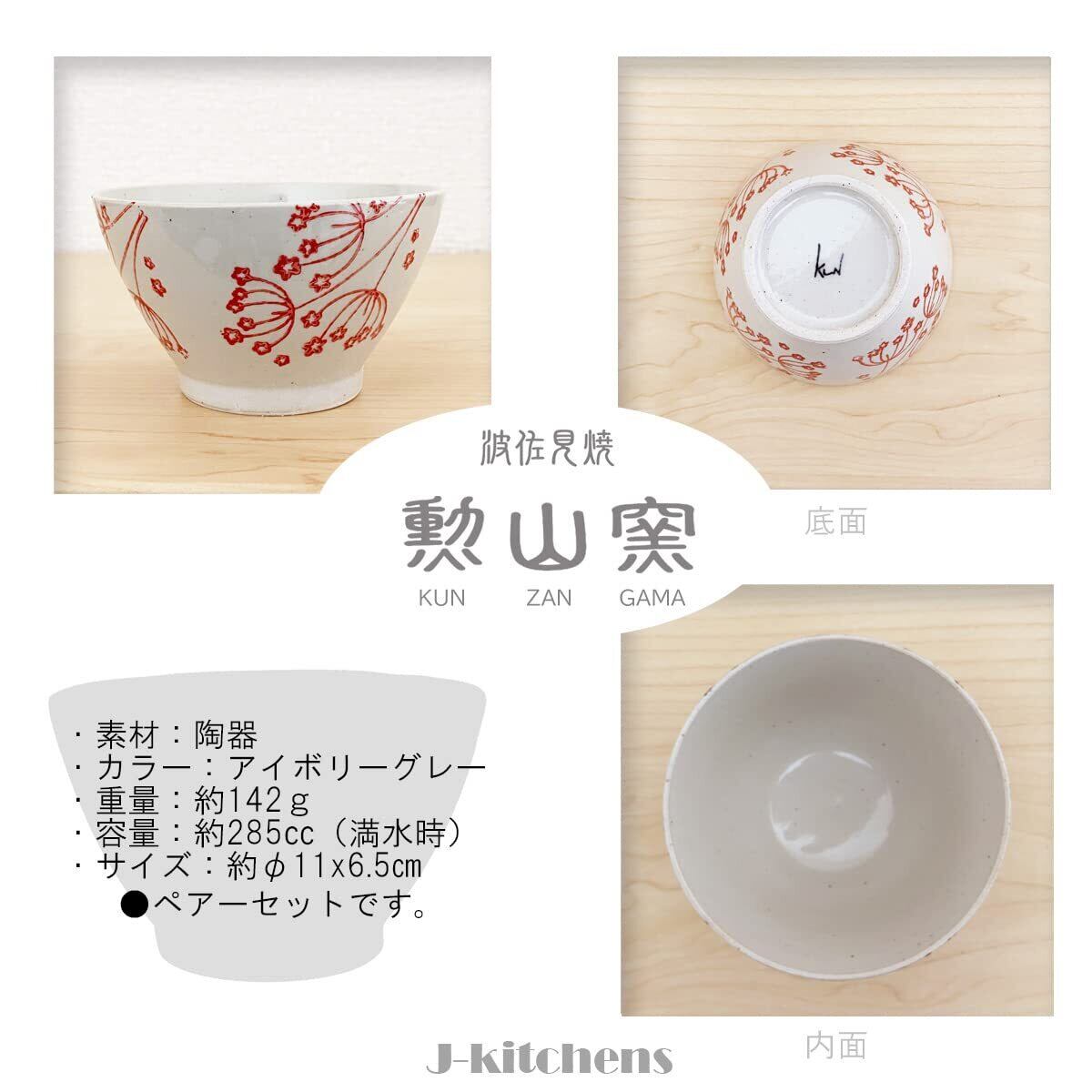 J-kitchens 勲山窯 ペア くらわんか 茶碗 セット 直径 11cm 高さ 6.5cm カスミソウ 波佐見焼 日本製