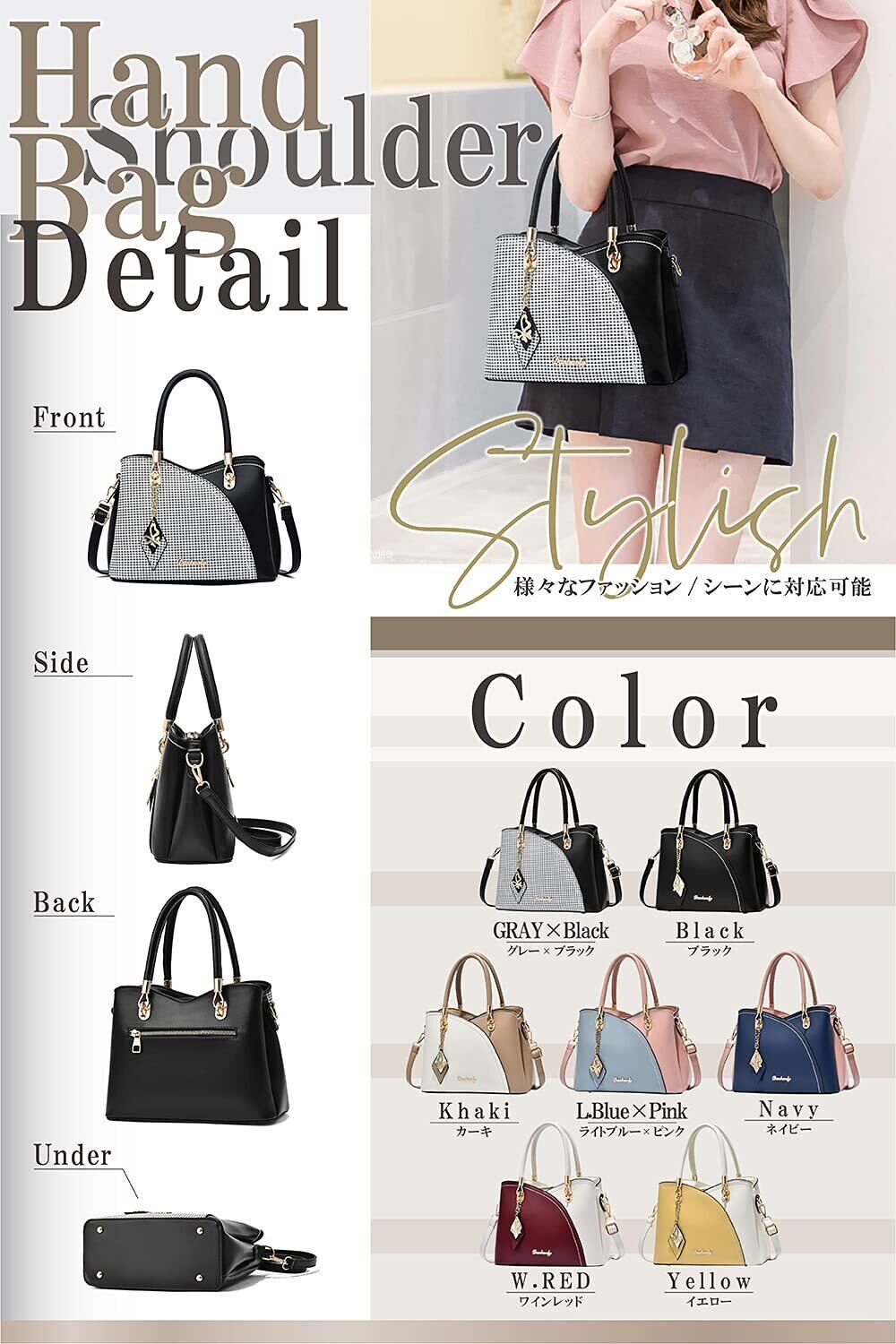 【豊富なカラーを揃えた大人かわいいバッグ】シンプルながらも目を引く鮮やかなカラーでファッション性抜群、大人女子に人気のバッグです。