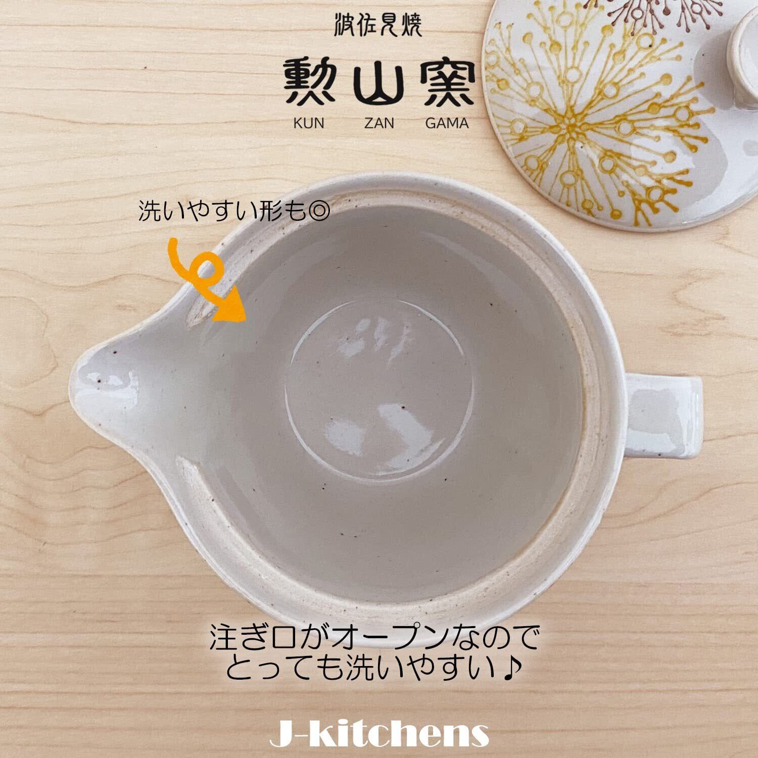 おしゃれな器で有名な波佐見焼の急須です。本体底面すれすれまで深さがあるステンレス製の茶こし付きなので少量でも美味しいお茶を楽しめます。又、片手でも注ぎやすいように蓋のつまみの位置を工夫しました。蓋の置き場に困らないように渕に掛けることが出来るように工夫してみました。