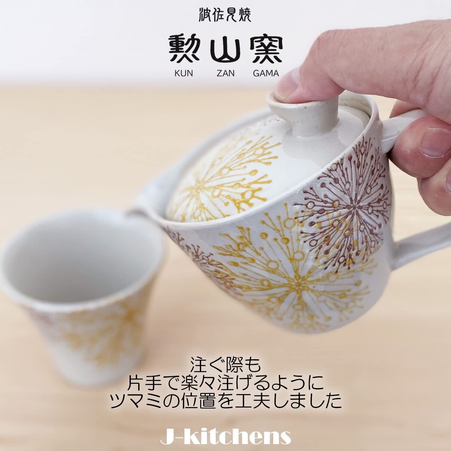 J-kitchens 勲山窯 急須セット 波佐見焼 日本製 (急須 ペア湯呑み おしゃれ 茶器 セット) 240cc 140cc 1人用 ~ 2人用 茶こし付き 花芯紋 イエロー