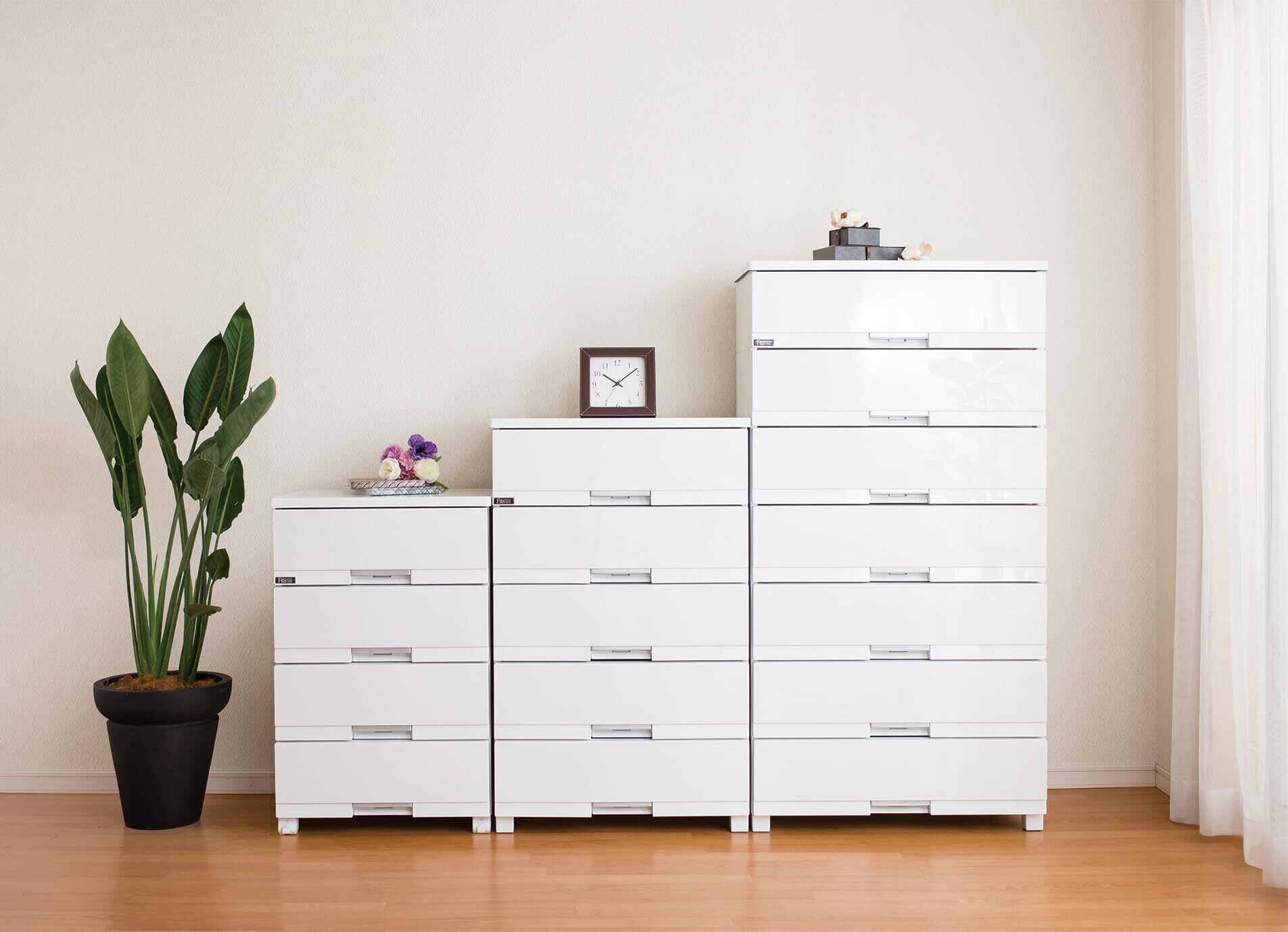 使いやすさと安心感を追及した、リビングにもオススメのチェスト。引出しの安全ロック仕様など、機能も充実しています。