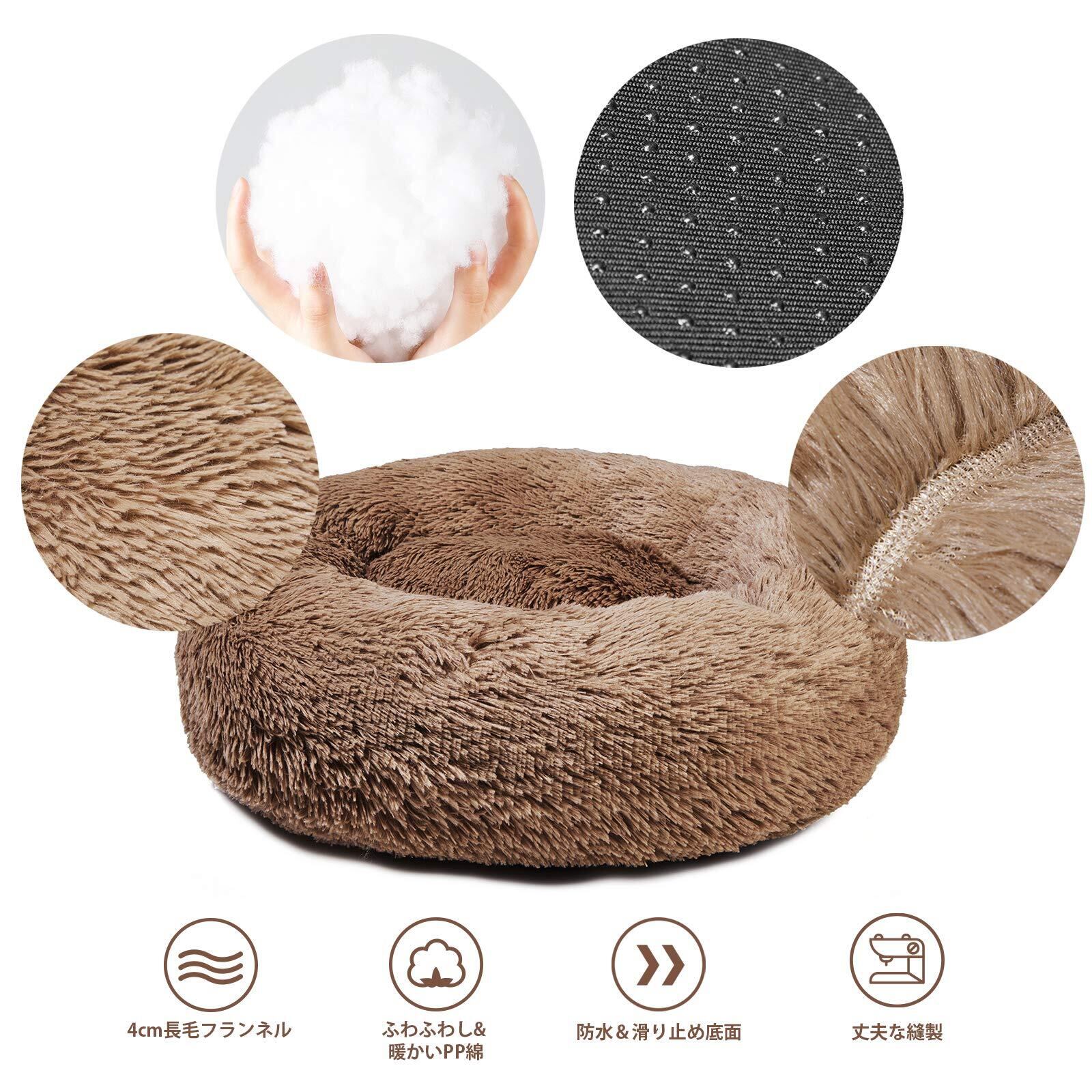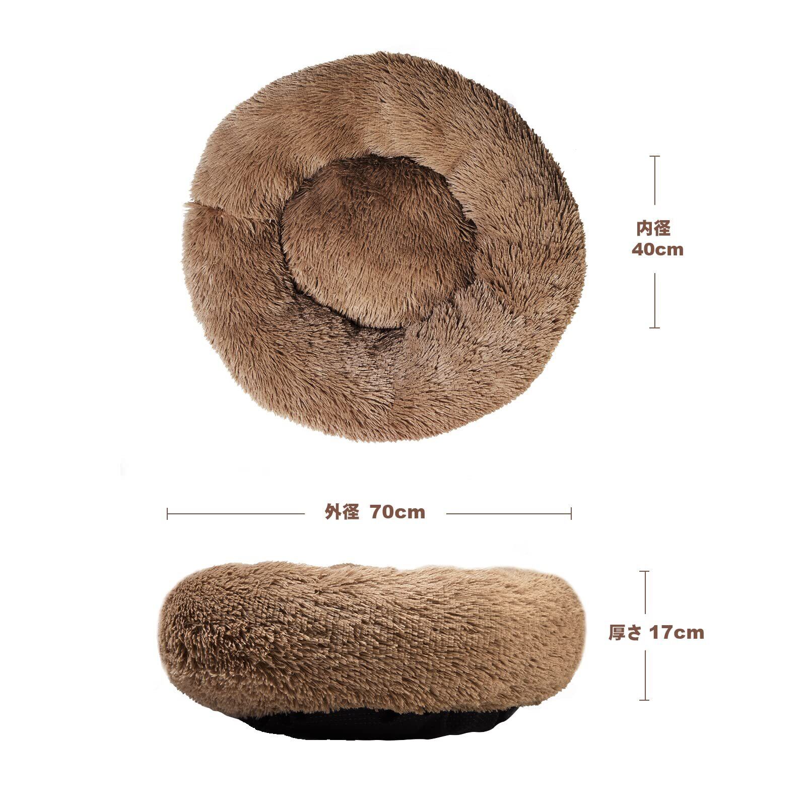 Aurako 70cm 犬ベッド 猫ベッド ふわふわ 丸型 クッション ドーナツペットベッド ぐっすり眠る 猫用 小型犬用 もこもこ 暖かい 滑り止め 防寒 寒さ対策 洗濯可能 子犬 猫用 サイズ選択可 カーキ