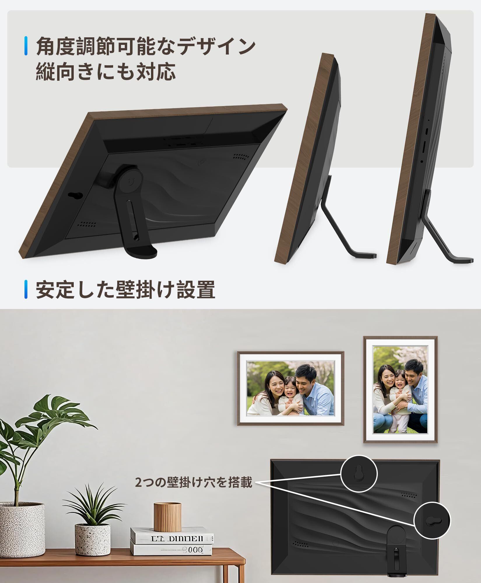 【10.1インチ高精細タッチパネル】FANGORデジタルフレームは、1280*800フルHD解像度のビデオ再生と16:9アスペクト比の優れた品質の画像を提供します。スマホより簡潔なシステムを搭載、手軽に触れて操作可能。画面の左側を指で上下にスワイプして、画面の明るさを調整します。 右側を上下にスワイプしてビデオの音量を調整します。初心者にも直感的でわかりやすい操作が可能です。フォントサイズを変更できるので、高齢者の目に優しい。