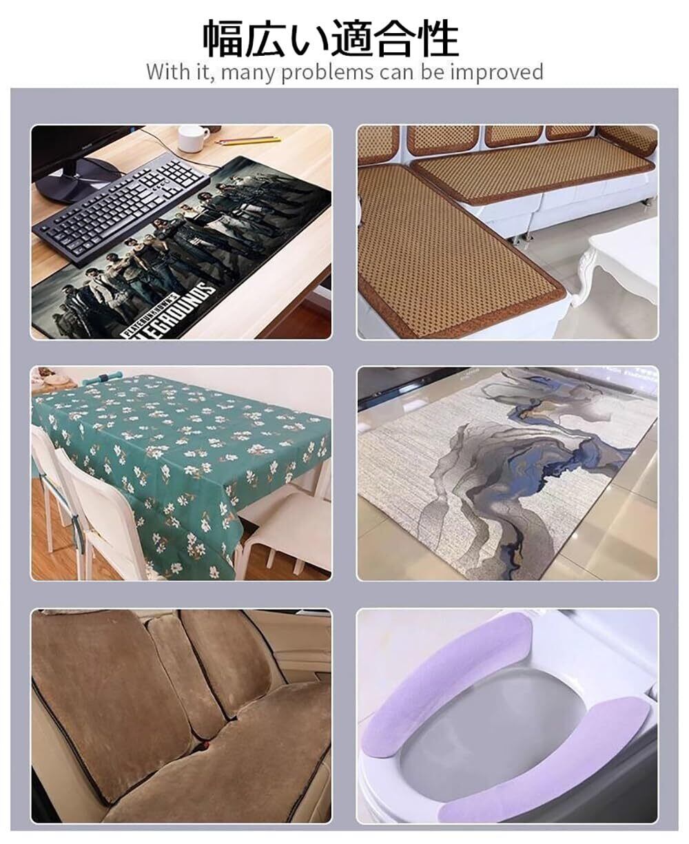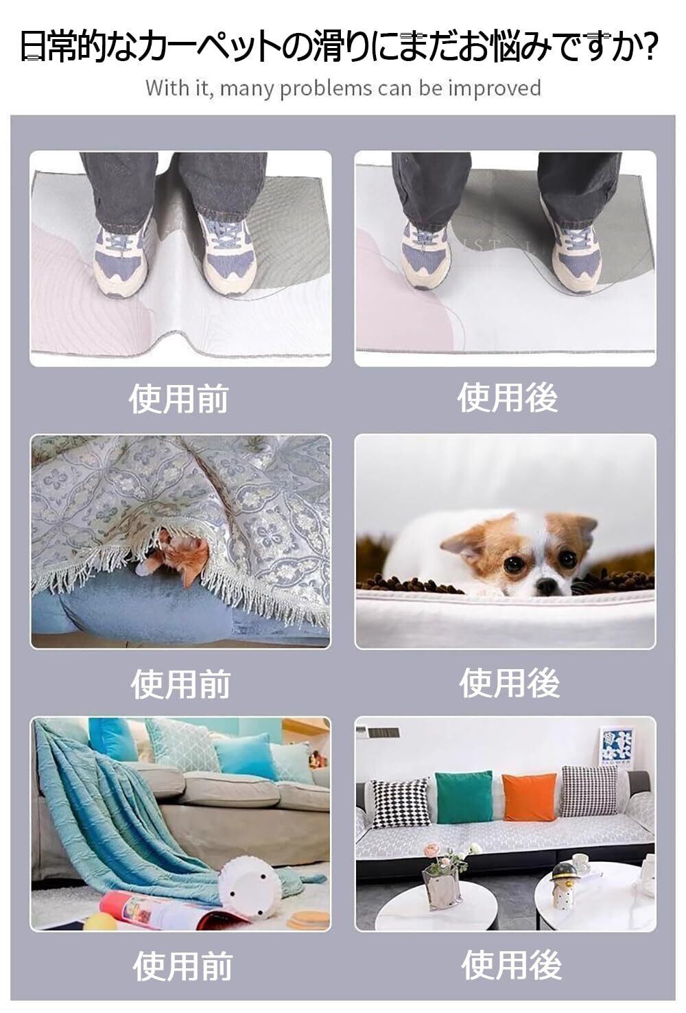 【使用便利】使用もとても便利でカーペットマッの は。シールを剥がして張るだけと。ラグパッドを床にしっかりと貼り付けます。最後に力を加えてしっかりと貼り付けます。最適な性能を発揮させるために、貼り付ける前にラグと床の接触面を十分に清掃することを忘れないでください!様々な形のカーペットやソファマットなどに対応出来ます。ハサミで任意の大きさにカットでき、簡単DIYを楽しみいただけます。小さいマットから大きなカーペットまで、アイディア次第で様々な用途に活用出来ます。