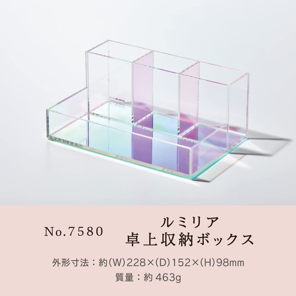 光のあたり方で表情を変える、オーロラカラーをアクセントとしたアクリル製収納シリーズの卓上収納ボックスです。