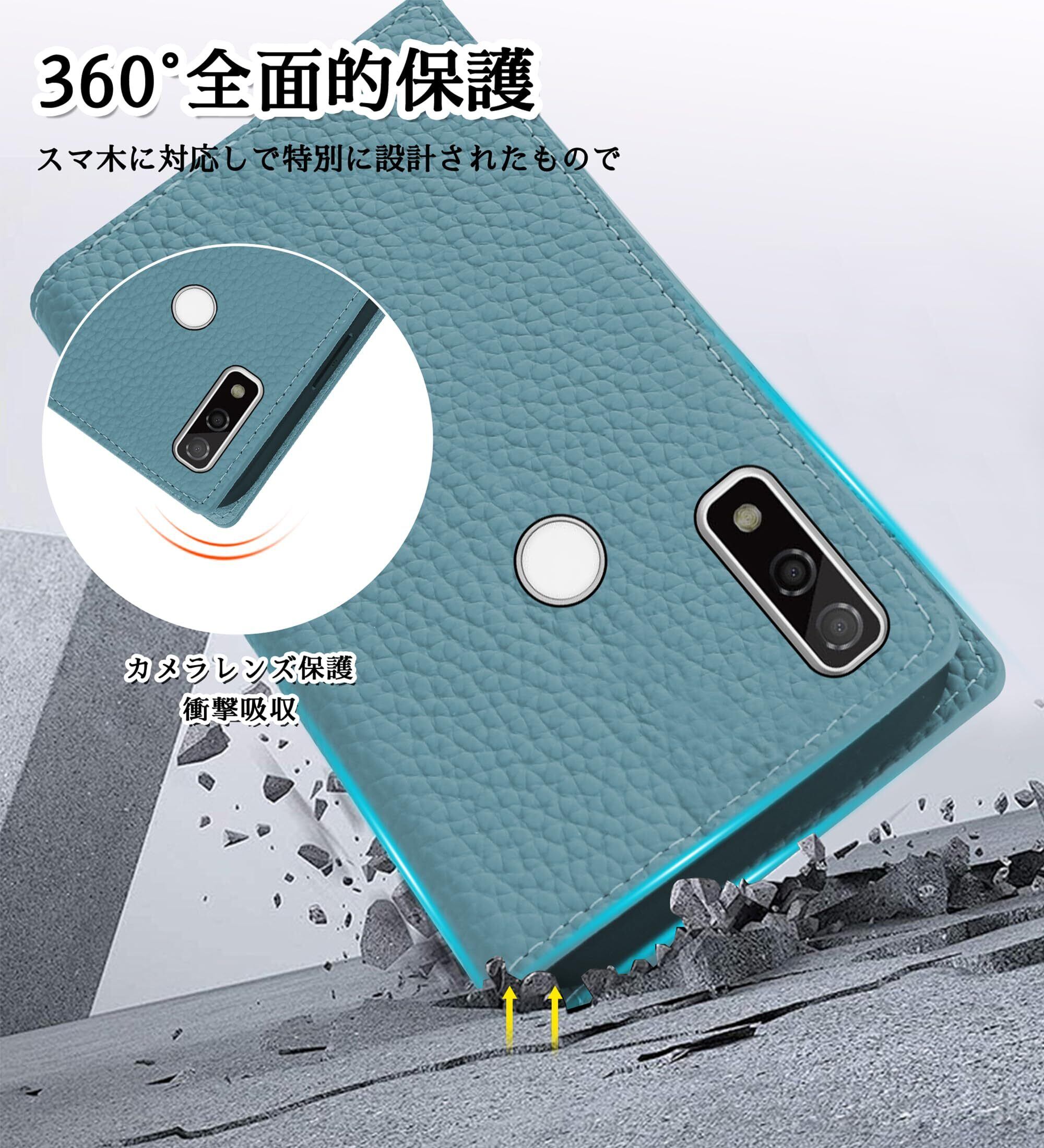 CLICSUN Arrows We 対応ケース F-51B FCG01 A101FC 高級 牛本革 アローズWE 対応ケース 手帳型 カバー Arrows We F-51B ケース 手帳型 本革 レザー カバー 全面保護 衝撃吸収 スタンド機能 ストラップ付き マグネット式 カードポケット ギフトボックス付き ブルー×グレー